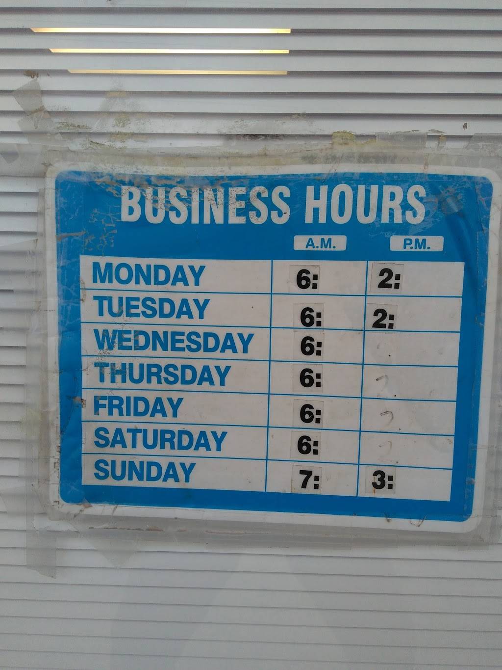 | Sunday: | 6:00 AM – 3:00 PM |