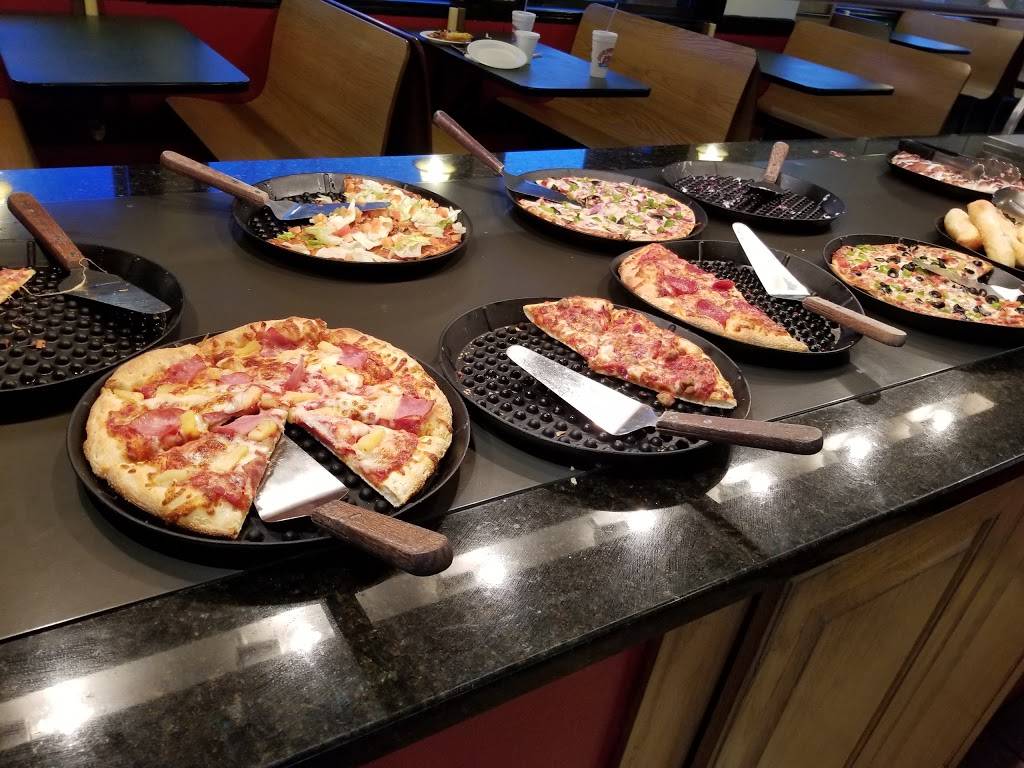 Good pizza for a quick bite to eat and they have a buffet every day. Kids 5 and under eat the buffet for free and kids 6 and over are $3.99. They don't post their pricing on their digital display menu screens inside; actually they don't even display their menu any longer, which I don't like. You have to look at a paper menu instead. I saw one of the older male employee poke a pizza and move a couple slices bare handed and then got a slice to eat, which isn't acceptable, but I've been their several times and that was the only time I saw something like that. The folks are friendly if you speak to them and get a conversation going first. They are always busy and employees seem overwhelmed.