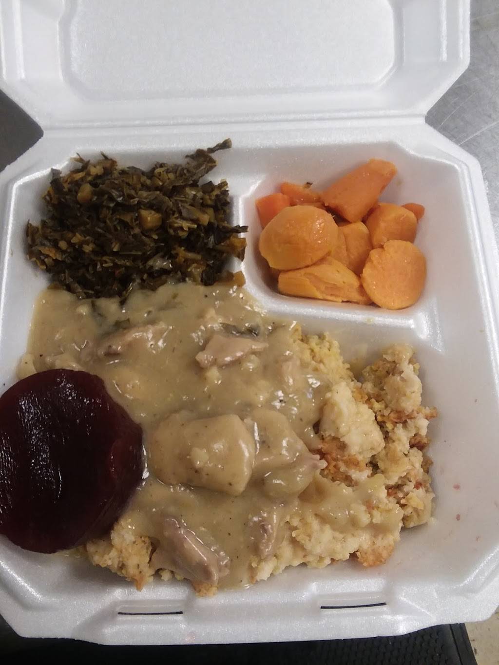 My wife loved the chicken and dressing meal she ordered, came with collard greens and yams. We also tried some nice green beans and mac n cheese on the side. A lot of food for a good value. Easy takeout, order at the counter, but they have some tables laid out too. Specials on the board, with burgers and fries also on the menu. Great to have a new family owned restaurant in town. Very friendly service, mother and daughter team.