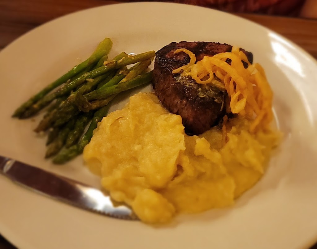 Great food!!! We had the Springer Chicken with Panko bread crumbs. It came with country ham sauce, mashed potatoes and green beans. It was delicious!!! The waiter was super nice and the restaurant was beautiful. A great place to relax and eat.