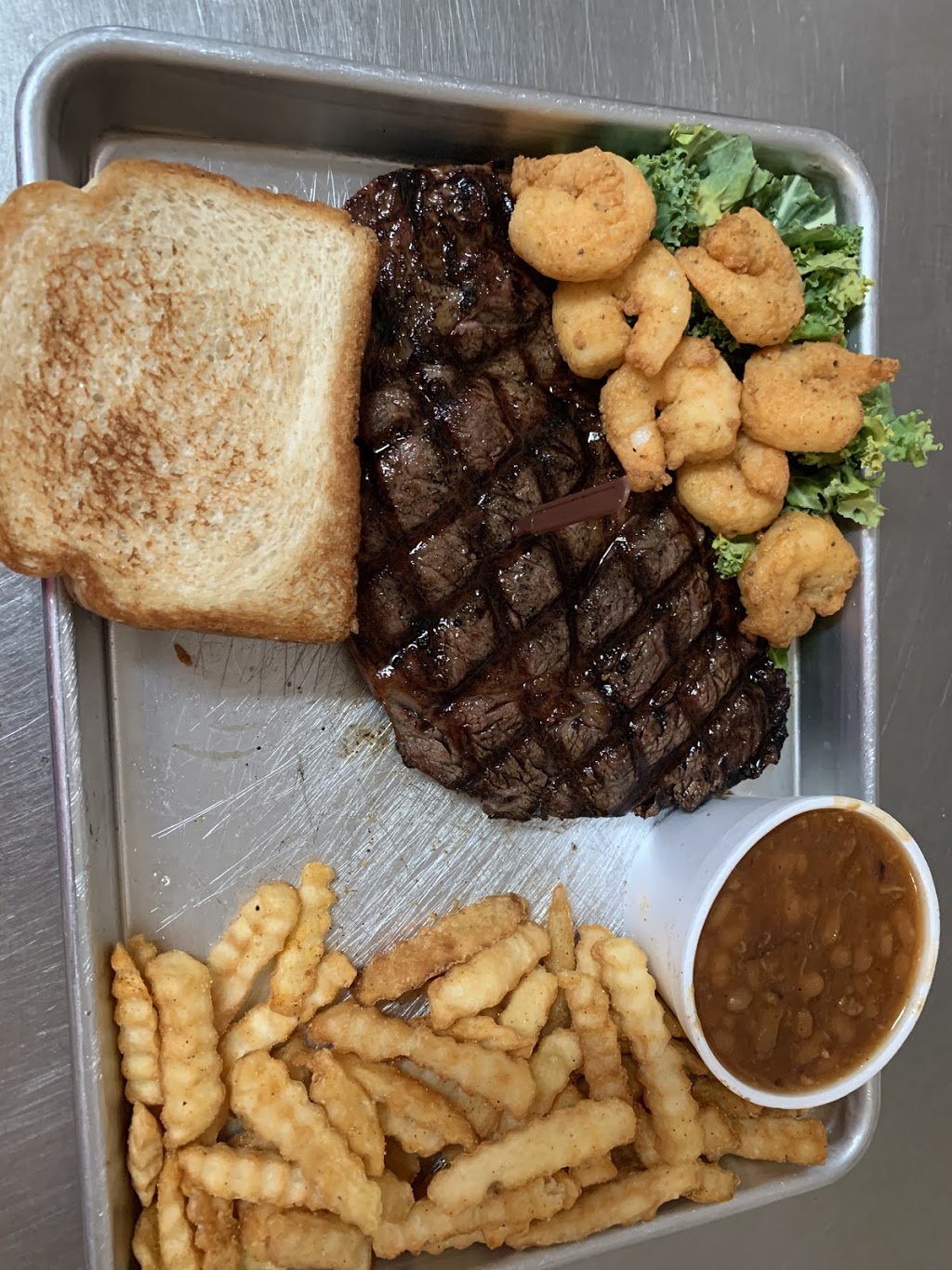 Guyvie and his super friendly staff make you feel like your at home as soon as you walk in the door. No matter what you pick, it will be very sizable portions that will fill you up. I had the Surf and Turf 8oz Sirlion Cole slaw & baked beans! Tammy had the BBQ sampler & it’s enough to make 3 meals out of it! We will be making the 1 hour trip again!!!
