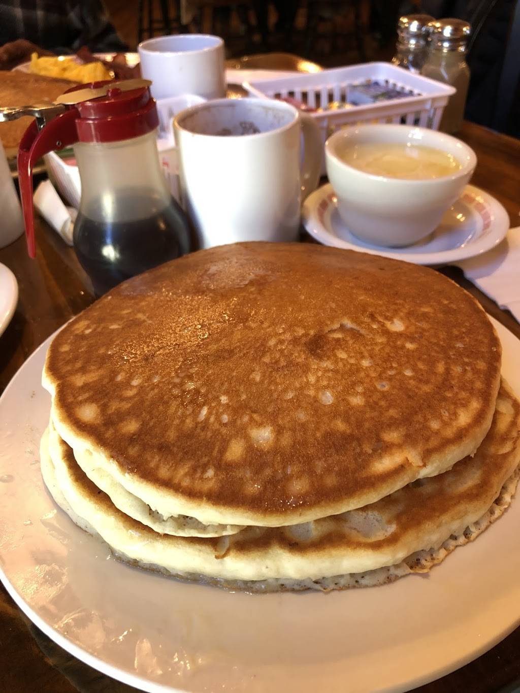 This place has the best pancakes. Moist on the inside and nicely baked on the outside. The servers were spot on, always refilling drinks and asking if the meal is okay. We spent around 25 dollars for the whole meal, including coffee and drinks. If you do come here be sure to sit outside, the view of the foundation is peaceful