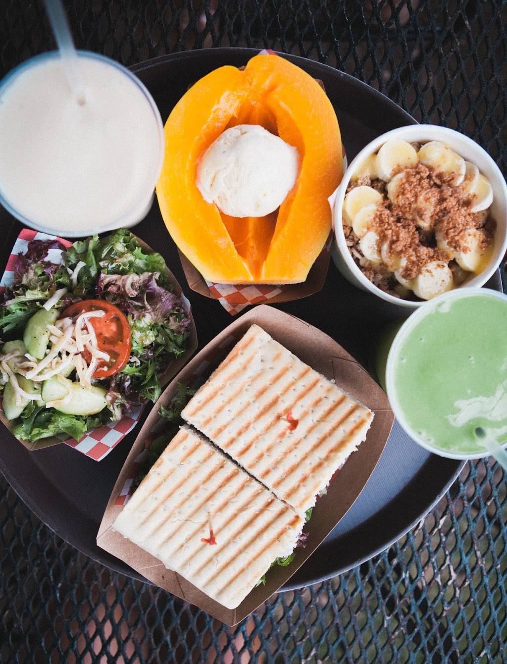 Fresh healthy options. Grilled garden salad hit the spot and satisfying. Great service and impressively clean bathrooms and hand washing. Papaya & sorbet dessert looks awesome. Low impact food containers. Fresh fruit stand, too.