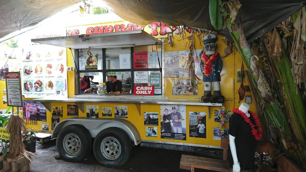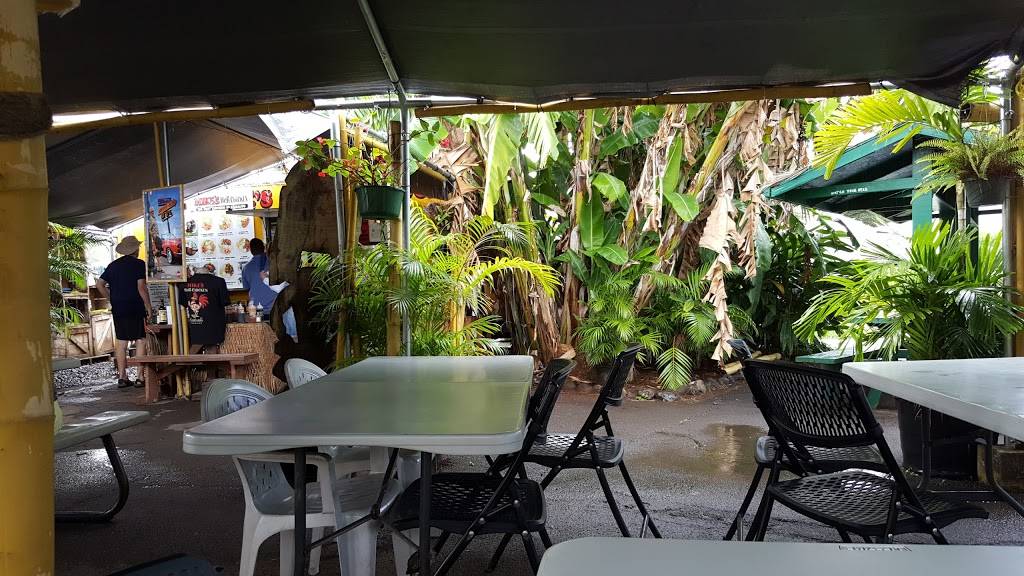 CASH ONLY. Good place to stop and have a bite to eat at a famously spotlighted food truck on the show, "Diners, Drive-ins, and Dives". My partner ordered the steak plate which came with rice and salad, over all the food was good and the meat had good flavour although the steak was a bit over cooked. I ordered the plate with pork and chicken which also came with rice and salad. My pork and chicken were both cooked perfectly! Pick-nick tables are under cover for dinning and there are several banana trees around the location.