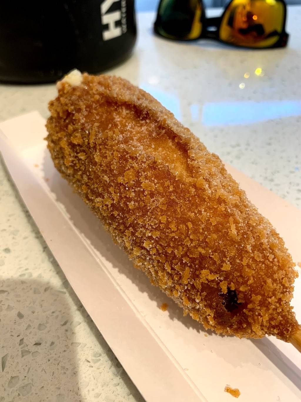 This place gets 5 stars just for the curly headed kid that works there, Super nice guy. I started with the lowest item on the menu and although the dog in the corn dog could have been better the recommendation to try it with sugar definitely didn’t disappoint. I’m all about trying new things and this was worth it. Have to come back and try other stuff on the menu