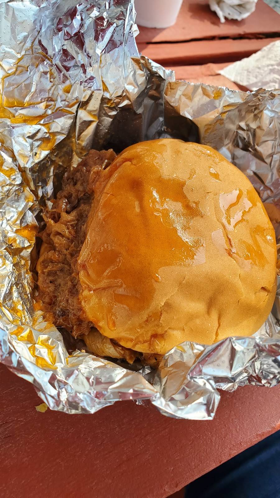 My first time eating here, I had the BBQ Pulled Pork sandwich. Glad it was all I had because it was enough, they give you a pretty big sandwich. The meat was really good, I'm glad I came here, I'll definitely be coming back, and I would recommend anyone else to give them a try.