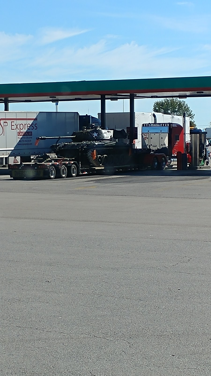 This place has it all! Great to fill up just off the freeway. Big trucks with car in tow will maneuver easily.