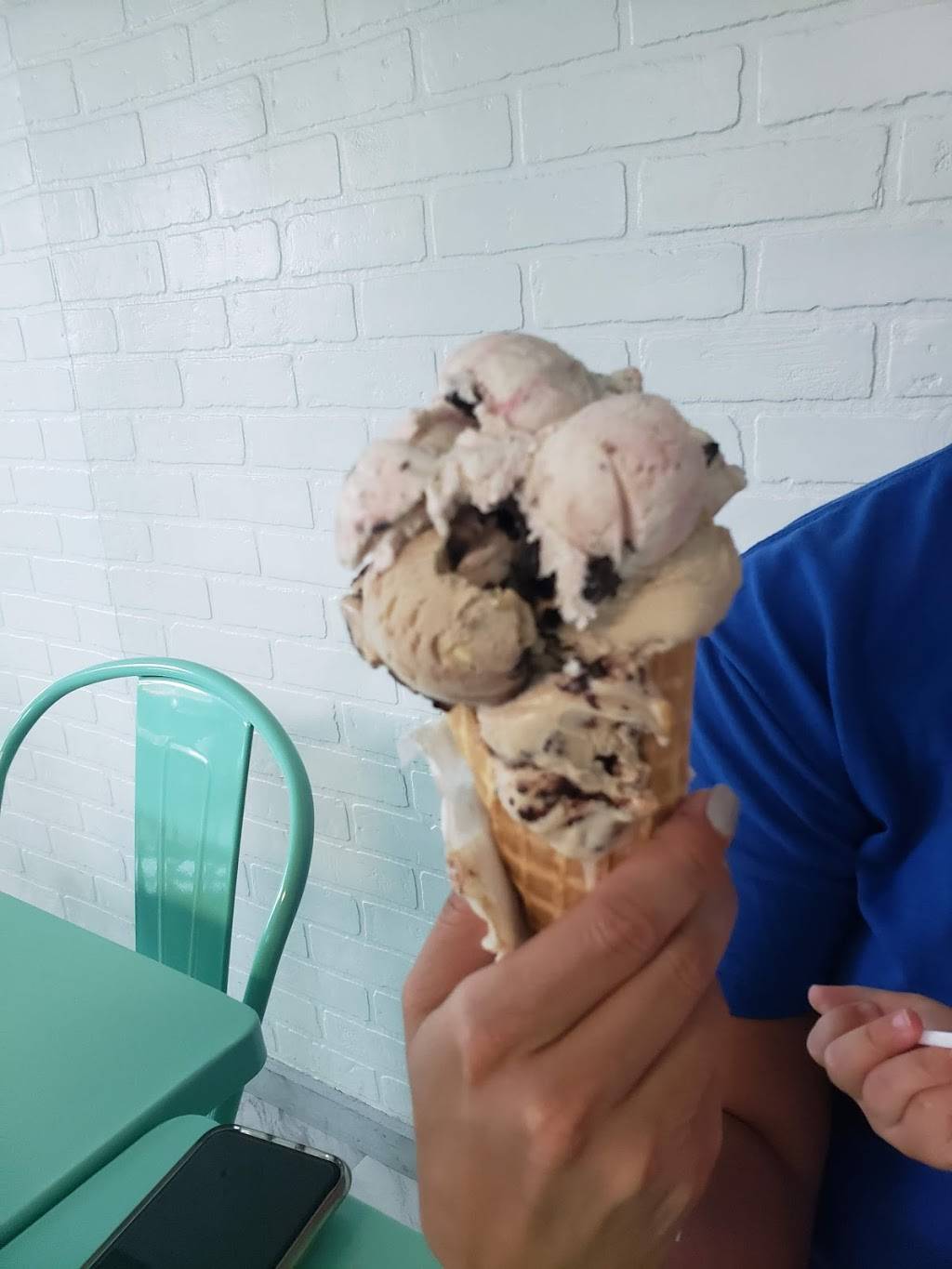 Stopped in today. The scoops were huge. I had blueberry cheese cake, and Carmel something. My wife had rocky road and mint choc chip. It takes a while to pick a flavor, because they have so many. Will surely go back.