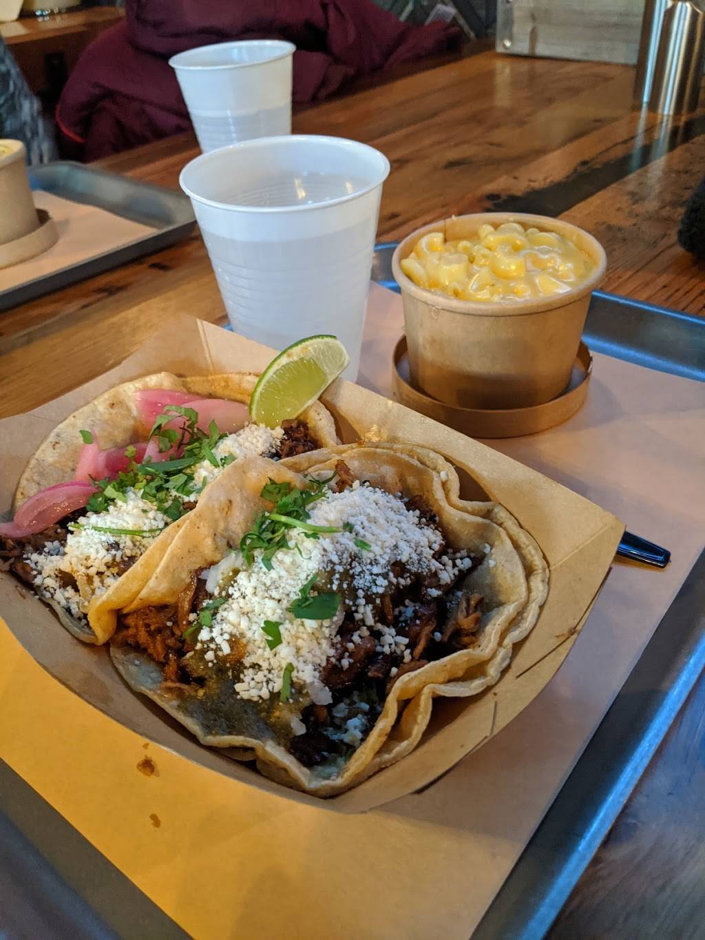 Just had an outstanding experience here! Walk in the place looks really cool and different than most fast casuals. Met and greeted by a staff with a smile (which is rare these days) and eagerness to educate me on the menu and products. I had the pork taco, brisket taco, and side of German potato salad. I am extremely happy with the service and the food great people and flavors! I will be back soon and bring back friends