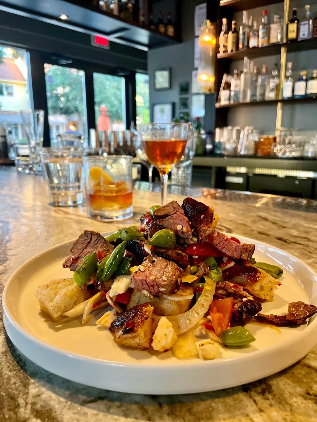 For food recommendations, Katherine and I recommend the Panzella steak salad and the Ahi Tuna Crudo.