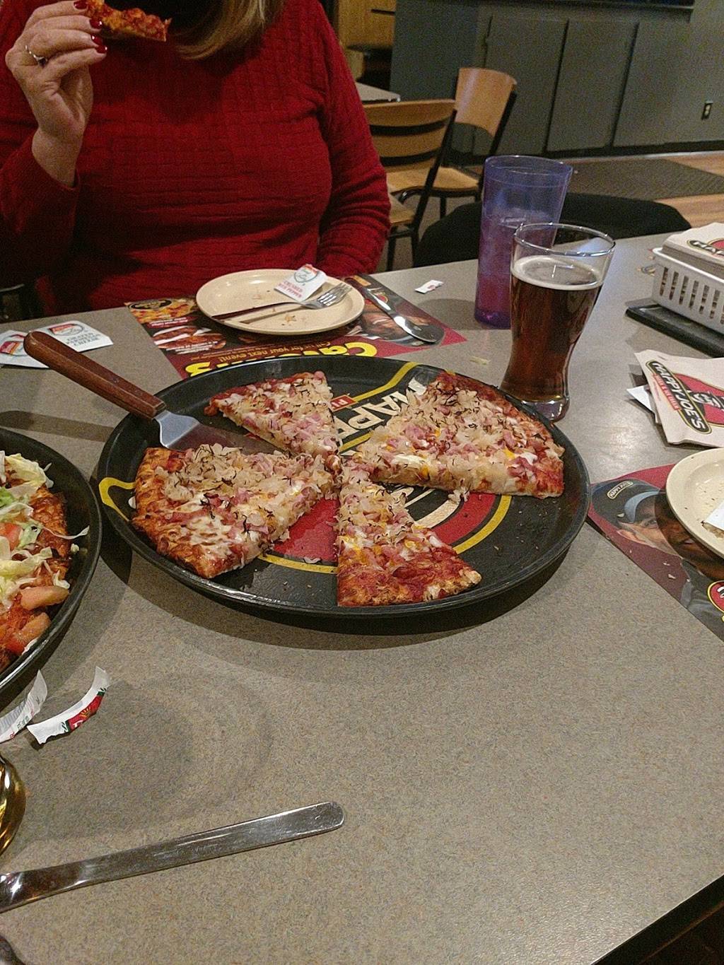 Great deal on Monday nights. Any large pizza and 4 drinks for $19.99