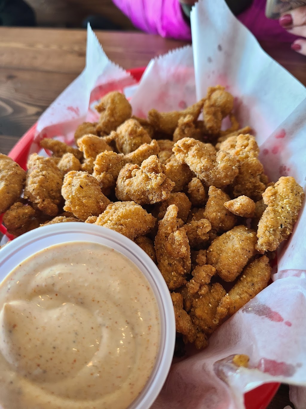 The fried crawfish tails were really good and it's a huge order. The dipping sauce that comes with them is great as well .