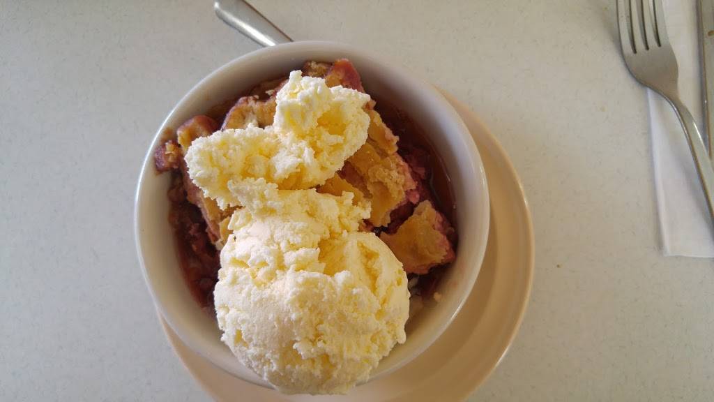 I also tried a strawberry rhubarb cobbler heated up with ice cream on top and didn't plan on finishing it but couldn't stop because it was so good. I got all of this food and it didn't break the bank. Great value and great service too!