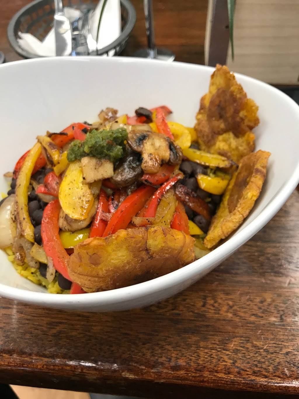 Delicious!!! I got the carne asada plantain sandwich. It came with a delicious side salad too. I have been here twice now and they are friendly and the chef has come to say hello. I would highly suggest this cafe for lunch. Prices are slightly higher than a quick lunch but 100% worth it all. Also the passion fruit juice was incredible. Can't wait to come back asap!