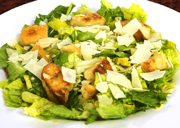 Generous sized Cesar salad with chicken and good italian beef sandwich with fries.