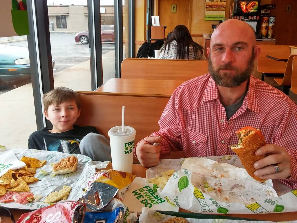 Food just regular subway sandwiches. I was impressed by how clean the store way. The employees were cleaning the windows and wiping the table and booth seats. The employees washed their hands before making our order.