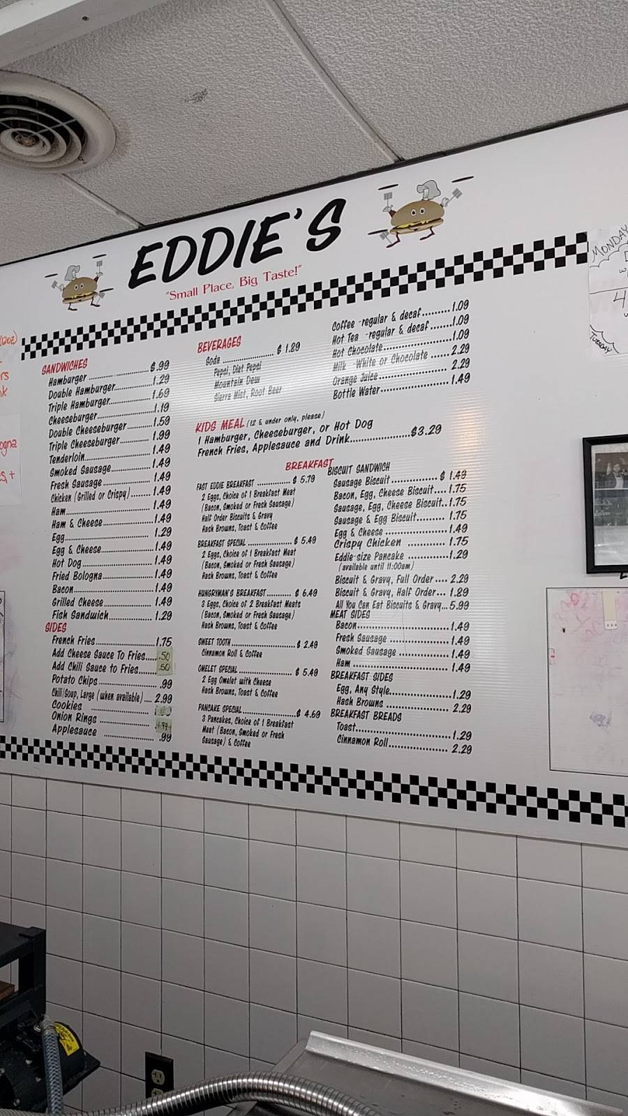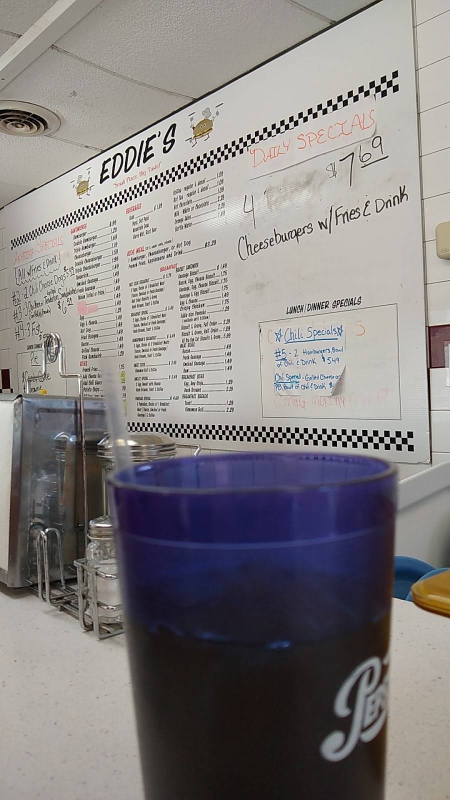 Since I moved up here to Indiana, I've been introduced to this wonderful little place. They have an amazing breakfast selection and an even better lunch/dinner selection. My favorite will probably always be their chili cheese dogs and the fries with the chili/cheese sauce on them. Everyone should try Eddie's at some time or another.
