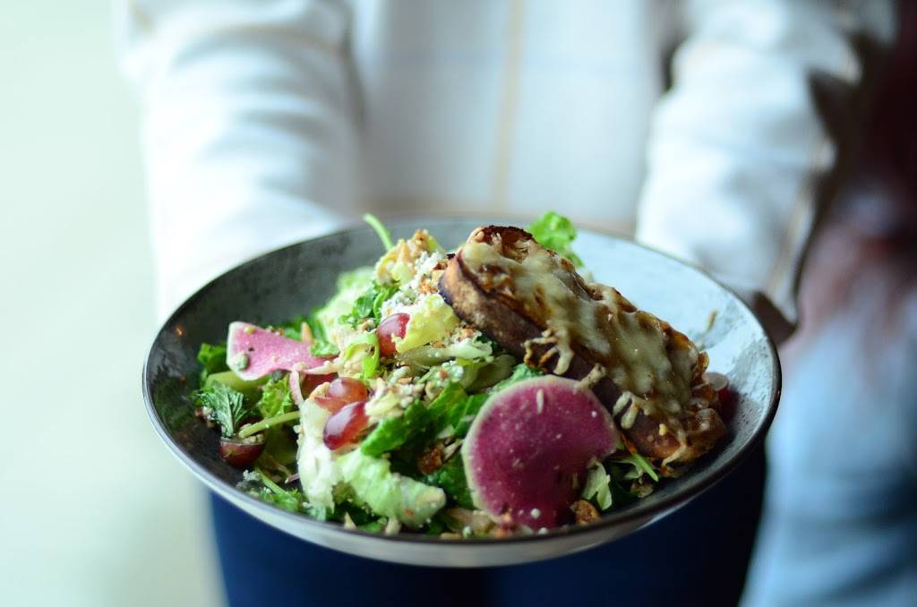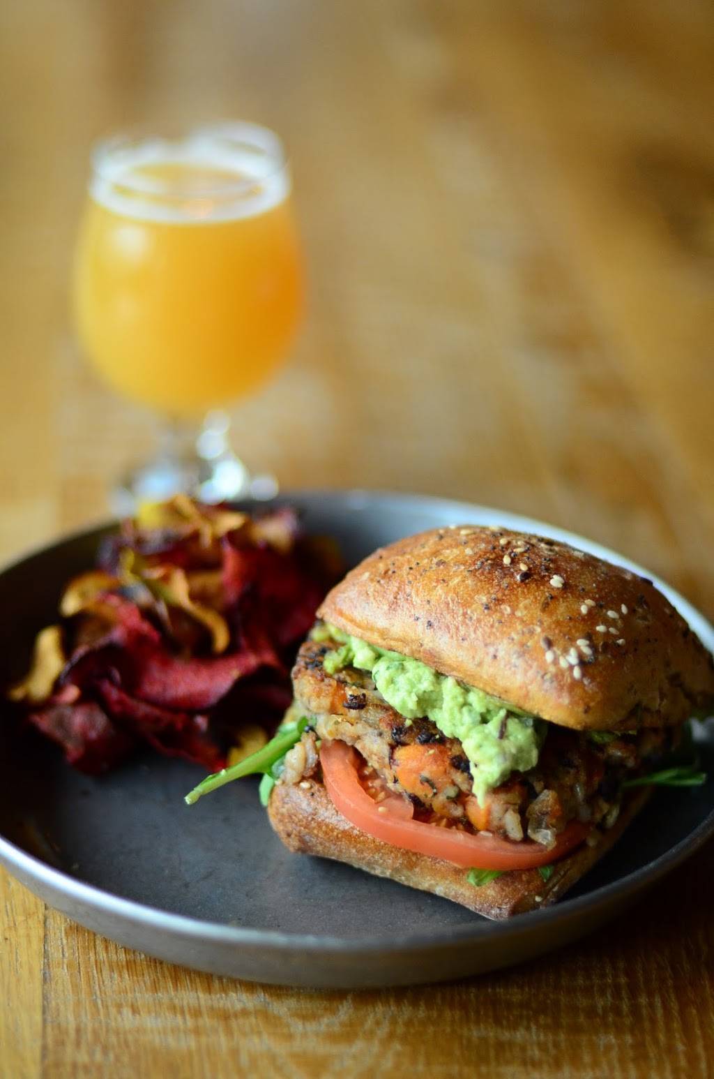 The pretzel crusted chicken sandwich was amazing! AND HUGE. House chips, delicious. Beet chips, delicious. Carrot cake cheesecake, HEAVEN. Definitely give this place a try!