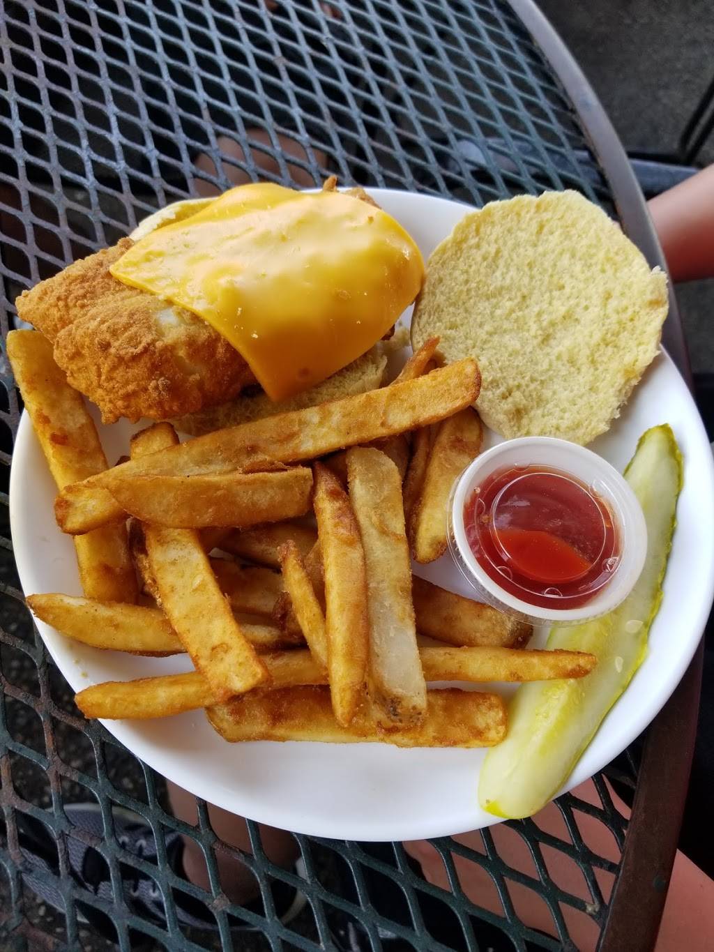 I enjoyed the fried tenderloin. Which was served on two sides of the bun. My statement was, "I only ordered one" the waitress informed me they had giant tenderloin. These were not pounded out pancake thin, but a thick piece of meat x 2. Took enough home for another meal.My husband had the cod dinner. He loved the cod, fries, and hush puppies, he said there was green peppers in the slaw and needed to be more creamy. He hates green peppers. Lol. Over all, good meal for the price.