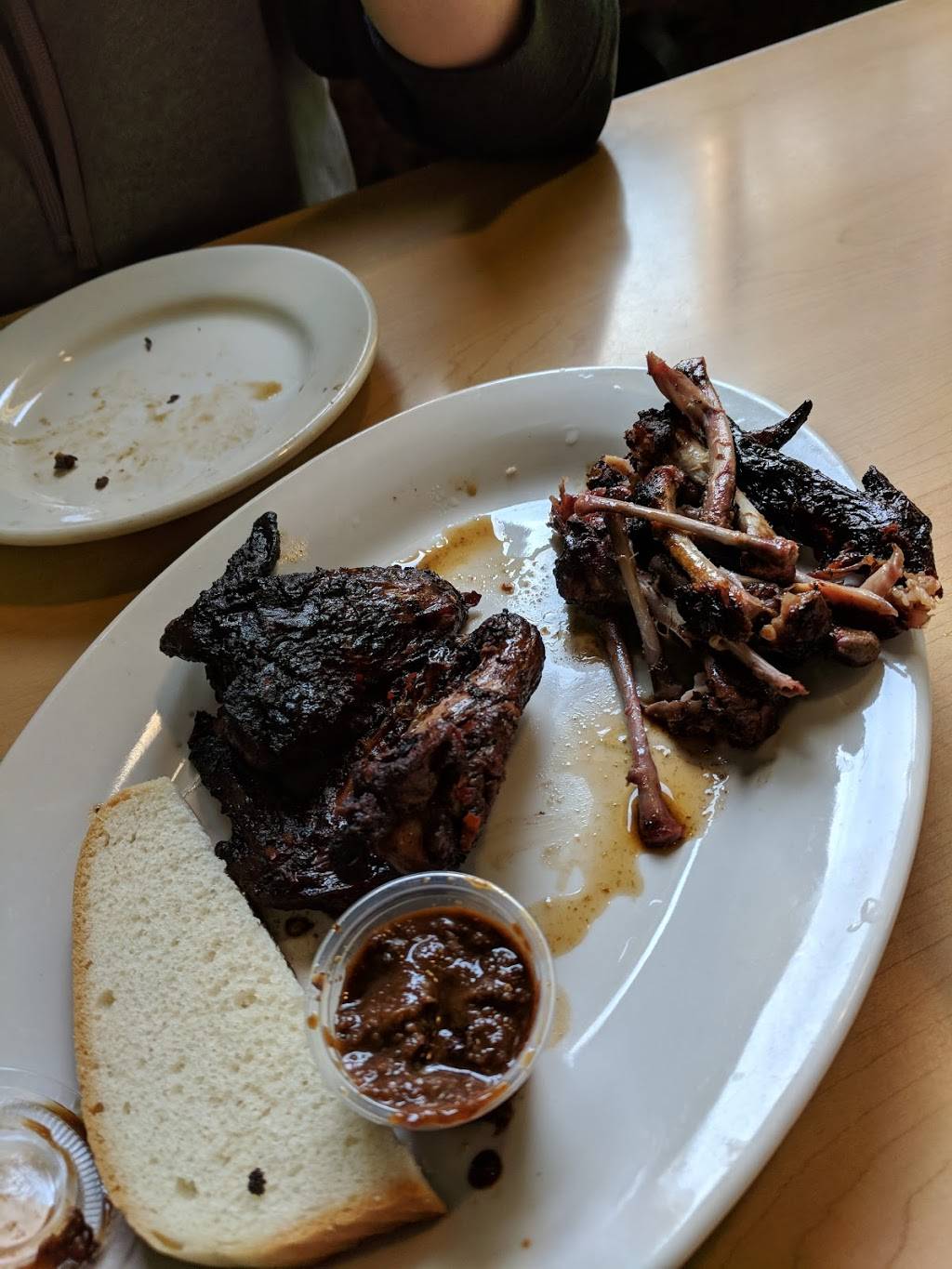 Food was great. Got the jerk chicken with rice and beans and a side of Mac and cheese. Chicken is kind of spicy so be aware if you don't like much above jalapeño heat