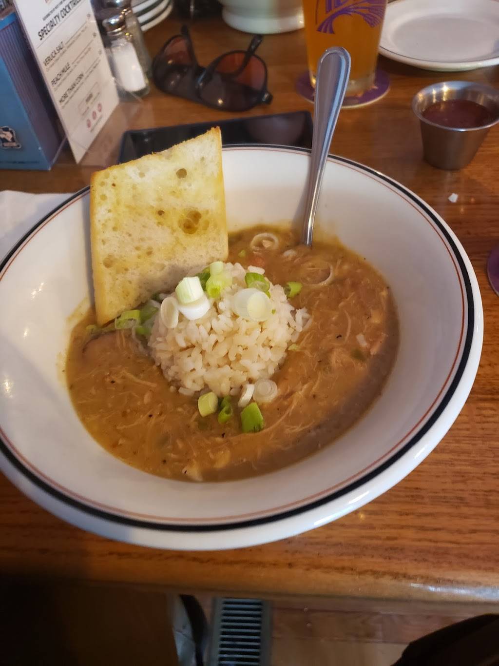 Good food. Reasonably priced with good daily specials. Wednesdays are half price salads Thursdays are half-price bowls and Fridays are half-price steaks. This is my second time being here in 2 days. The first day I enjoyed the Cajun chicken and sausage gumbo. Today's visit I had the red beans rice with andouille sausage. Also had the beignets very light and fluffy. This restaurants beer selection is pretty good.