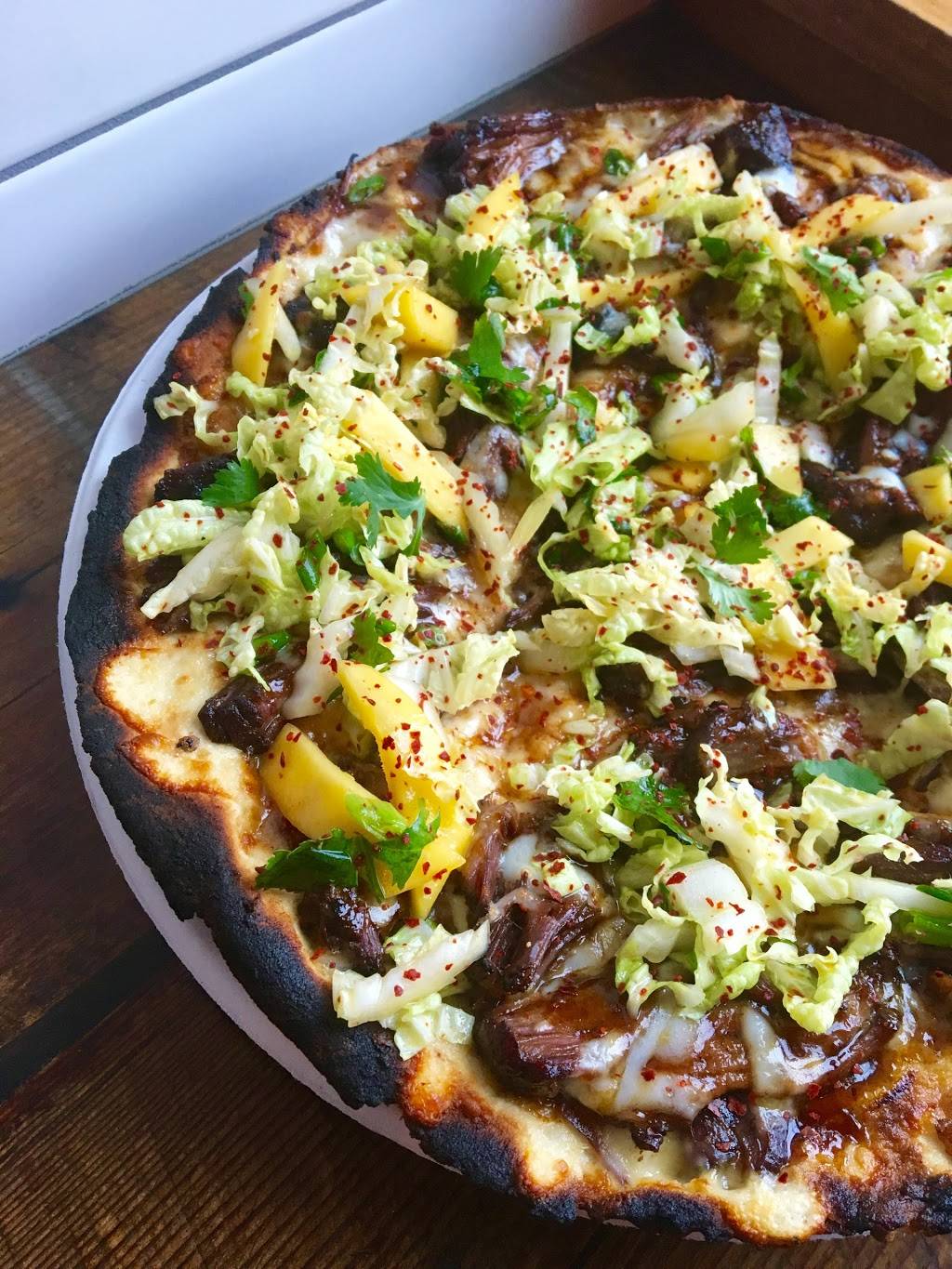 Wood fired pizza is fantastic. Craft cocktails are on point as well. Service is great and everyone is super friendly. Small space and they offer take out. Some vegan options if that's your thing.