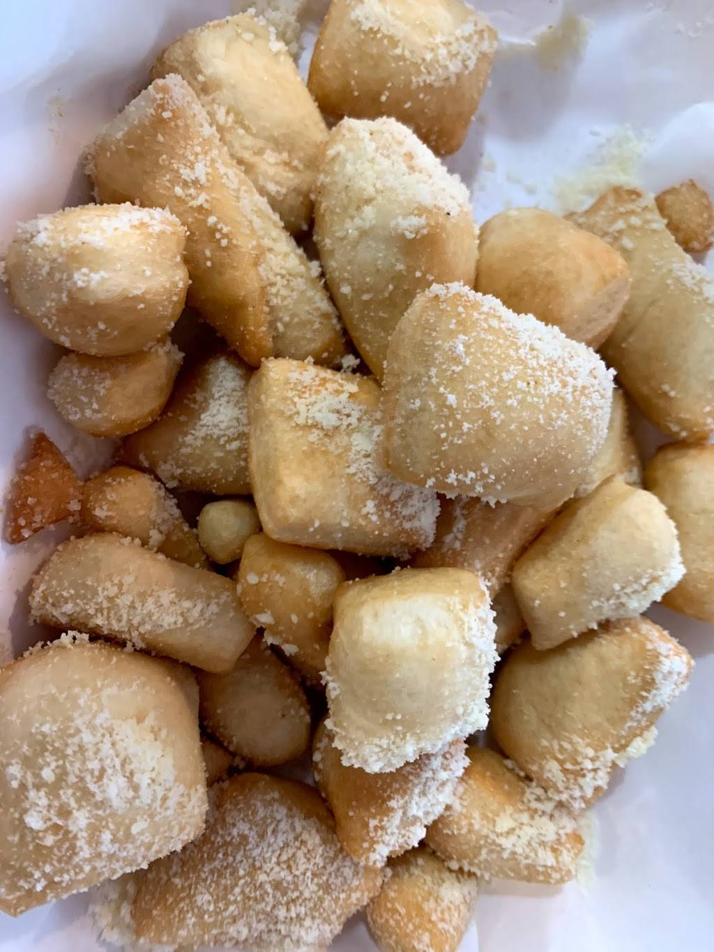 It was a new waitresses first day. She was very young very pretty and very sweet.The food was pretty good though my sausage sub came out about 25 minutes after my wife's salad. Pretty poor planning on the kitchen's side. However, the sausage sub was incredible.the dopey dough isn't anything special. It's just small pieces of dough balls rolled and some spices. Still pretty damn good