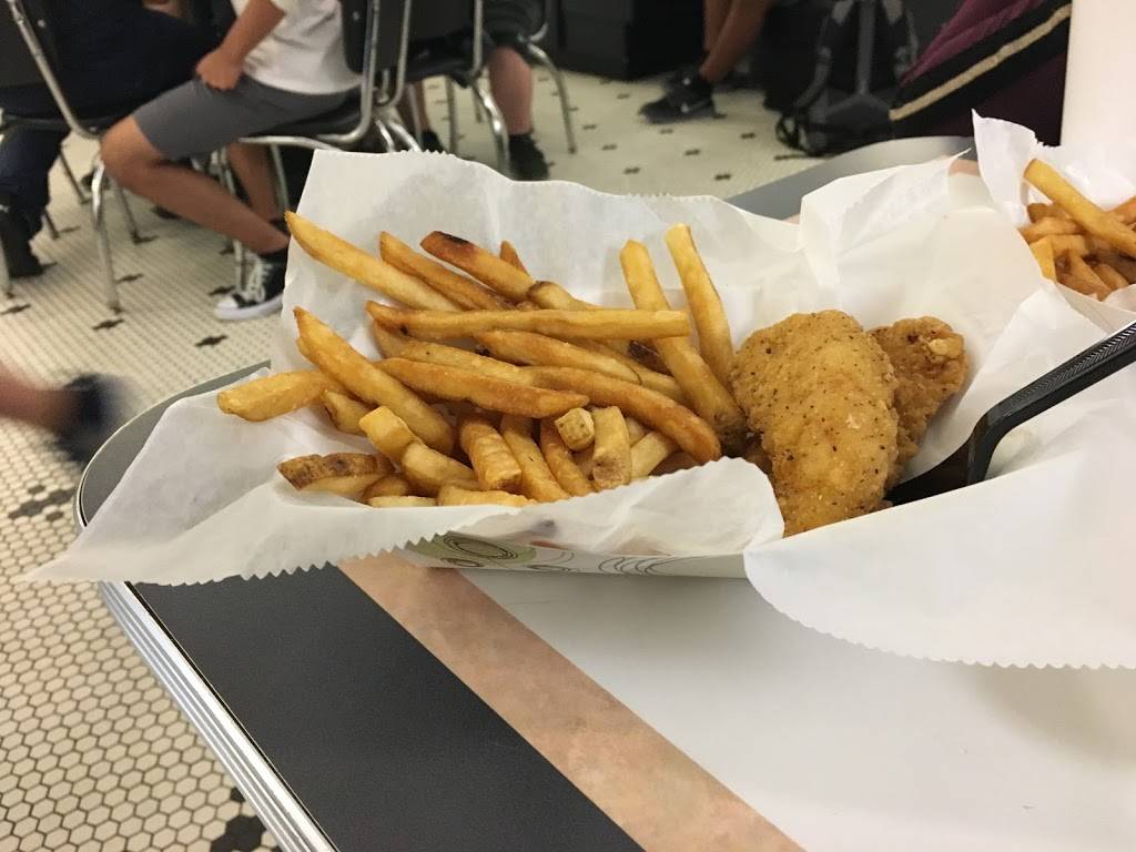 1950s style diner with good food, and a fun atmosphere. Different flavored shake of the month, with often some funky flavors.