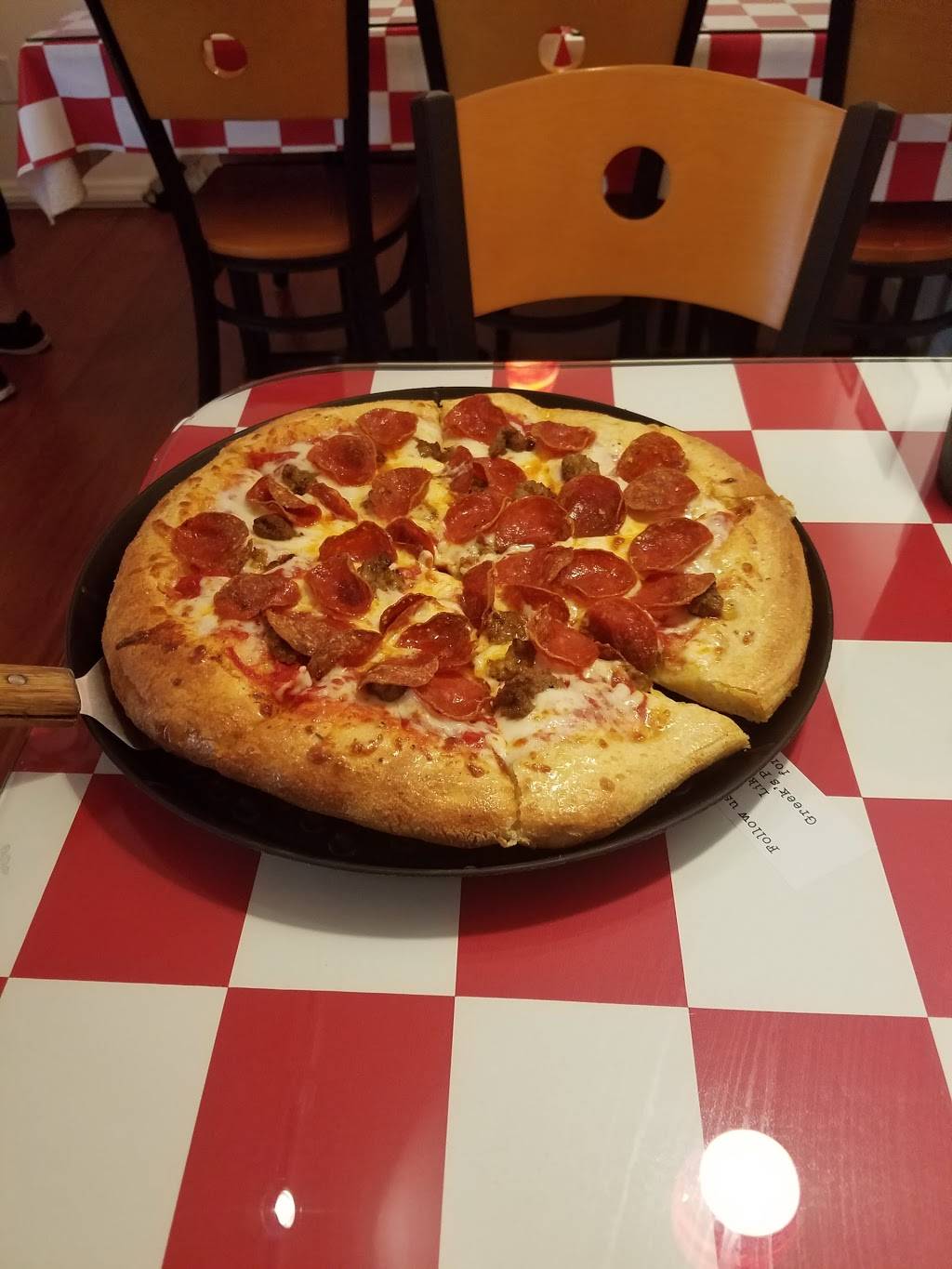 Greeks pizza is always good and this location was no different! The restaurant was very clean and the service was fast. The food was correct, hot, and good! If we are ever back in this location then we would be happy to stop in again. If you have never had Greeks Pizza then I highly suggest you give this location a try!