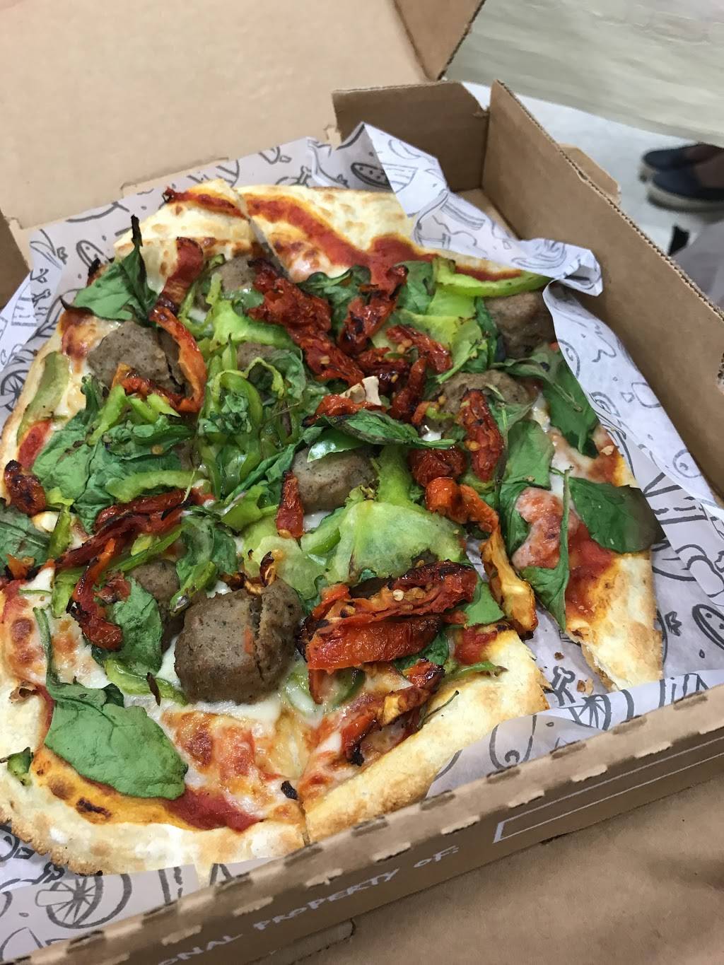 Azzip is always a solid decision. Fresh ingredients and the ability to customize your pizza the way you want always leads to a great meal! Sad outside in the patio. It was a little windy but great ambiance.