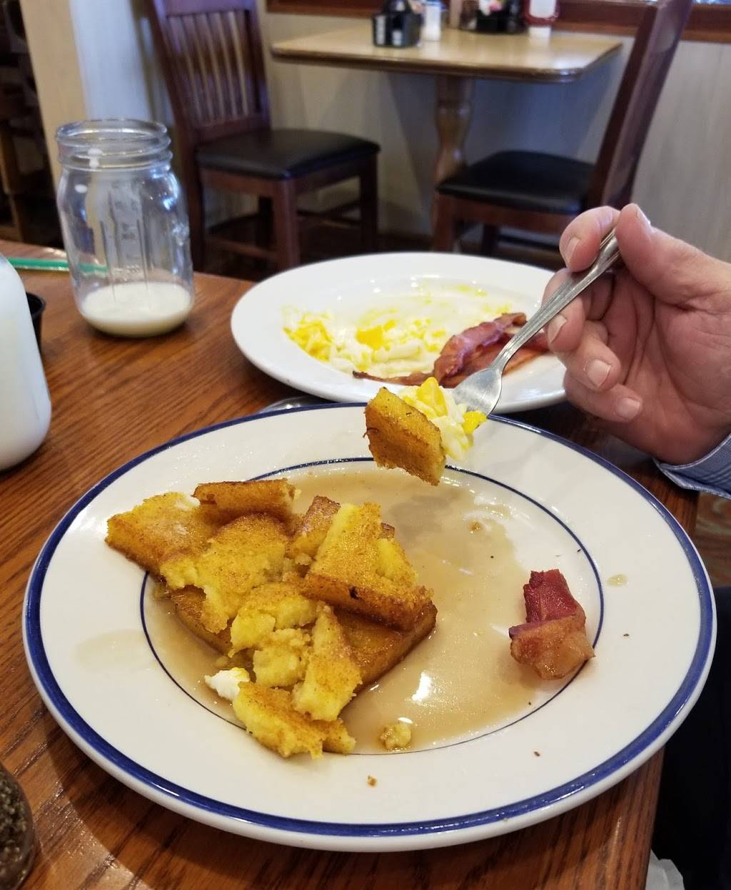 Hadn't been here in twenty years so it was nice to have their food again! The corn mush was new and is now one of my favorites! Our first waitress did a great job on my coffee drink as well. Was very pretty!