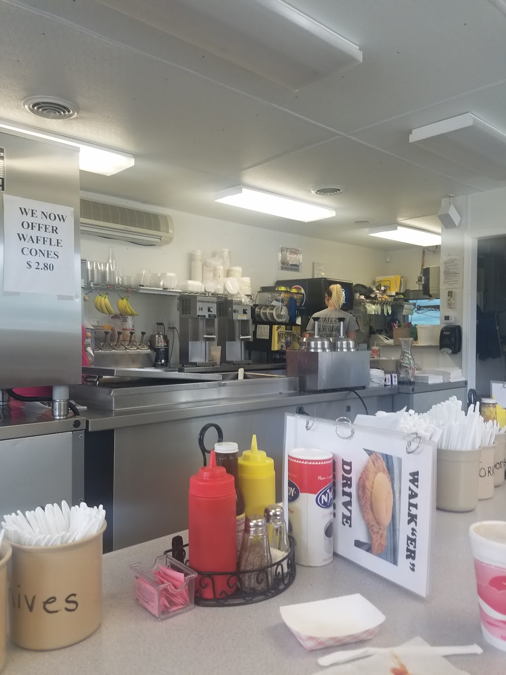 Quick, friendly, service. Clean. Great outdoor seating. Their ice-cream and shakes are awesome on a day that's hotter than the ninth gate of hell.