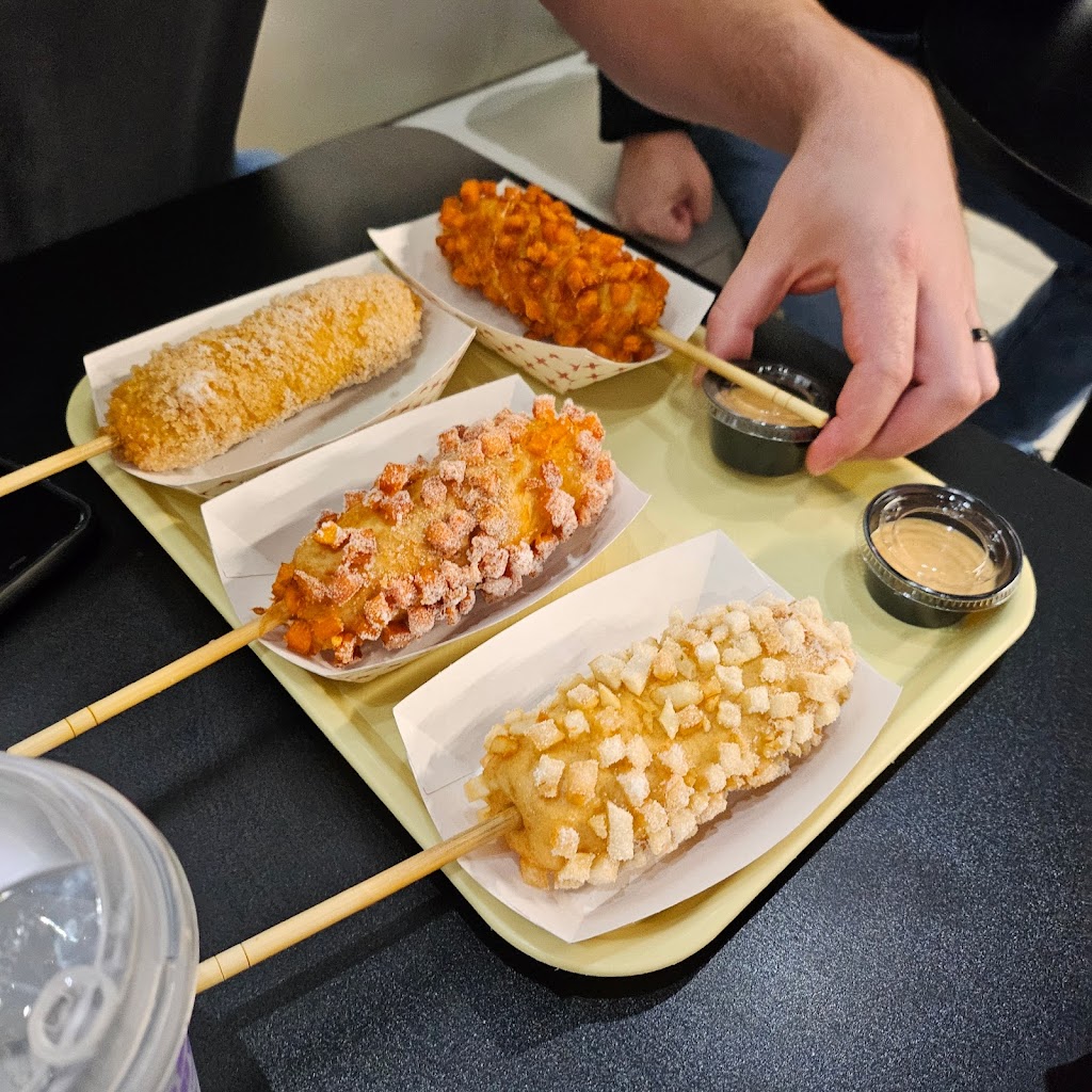 Service was quick! Kind of pricey but it's a lot of food! The menus are pretty self-explanatory. I've had Korean hot dogs before so I knew what to expect. The menu has suggestions for fillings, etc to help you along. The staff is also really eager to answer any questions as busy as they are. The boba tea was delicious but the hot dogs were🔥🔥🔥 It was my friend's first time having them and she loved them! They're definitely a novelty food and not meant for every day consumption but it's safe to say that this is a treat! Not gonna lie, the Ube/Cheese rolled in sugar was my favorite and I don't even like dessert foods 🤯🤯🤯