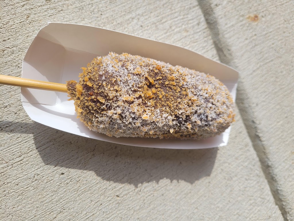 Food is good! Imagine a large moz stick on a stick, or a corn dog, or a combination of the two (hot dog on bottom). The teas were good. My daughter tried the cookies and cream while I had the Thai tea.