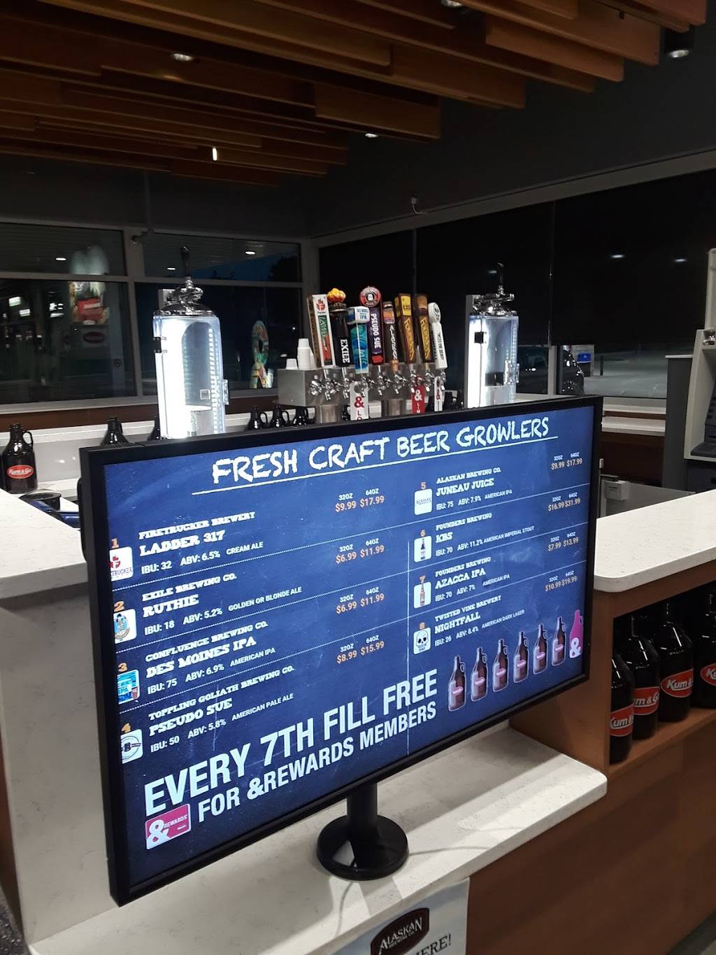 This is the cleanest gas station I have ever been to. Exhausted travelers on your way down 35 rejoice!! The bathrooms are like a hotel--a NICE hotel. Their refill mugs are not only hilarious, but a good deal--if you get the big 10.99 one I'm pretty sure it holds a liter of soda and the first fill up is free, with the bonus of being a giggle worthy souvenir. They have a reputation in the midwest due to the name, but did you know they also donate to charity? What a great chain. This one also had local beers on tap. What's not to love about this place?!