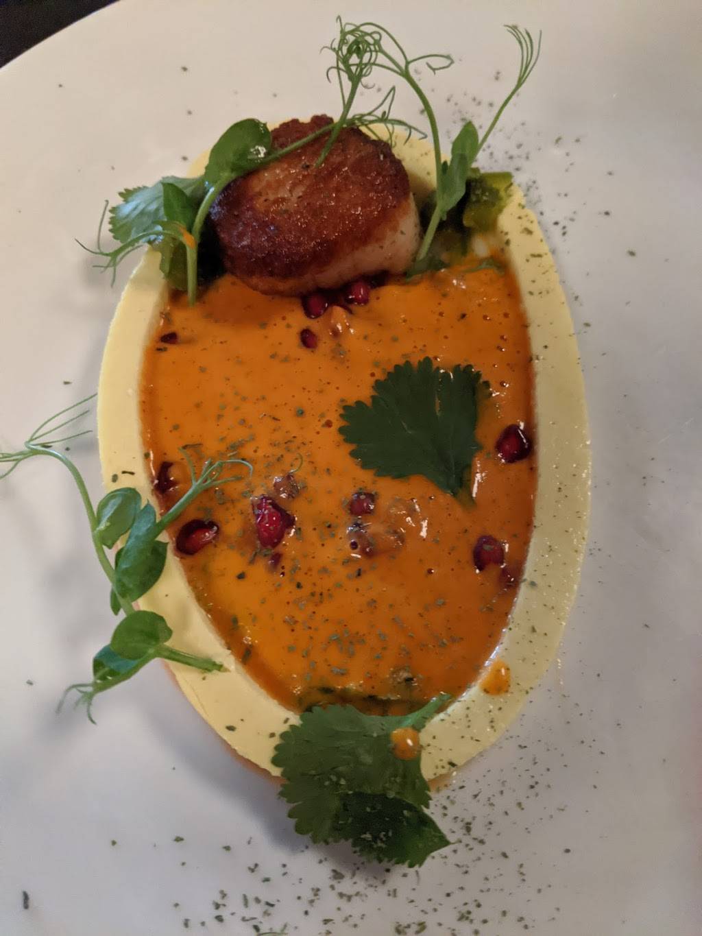 We decided to try a new restaurant for a nice fine dining experience. We were blown away by the little surprises like a “gift from the kirchen” shortly after sitting down. The sweet corn starter was amazing and just the right amount of sweet and little lime bubbles for a tart to balance. The main course I chose was scallops with farrow porridge and roasted cauliflower and was simply exquisite. MUST TRY!!