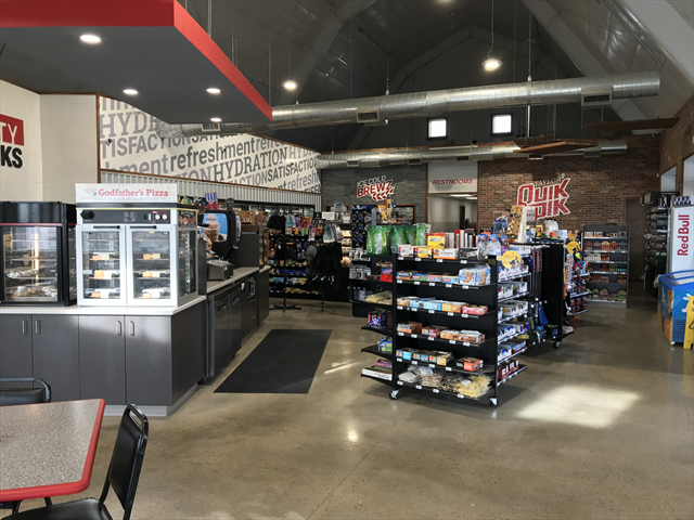 Truck parking and clean restrooms as well as clean bright store.