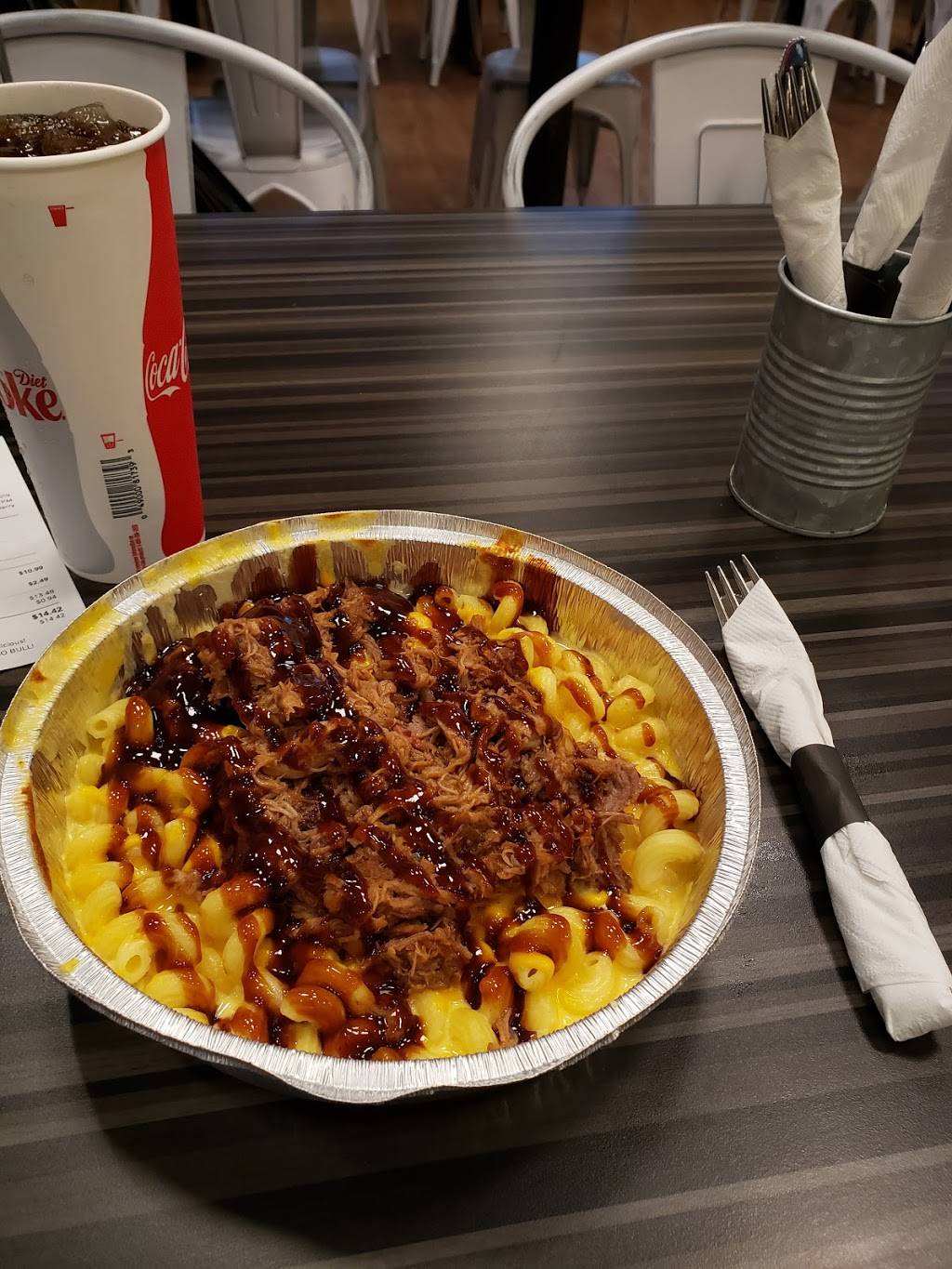 I got the cheeseburger Mac. The cheese on the Mac is very good. The hamburger didn’t taste or have the texture of meat. It was soft and squishy like a pancake. No real burger flavor. The place is very clean with good service.