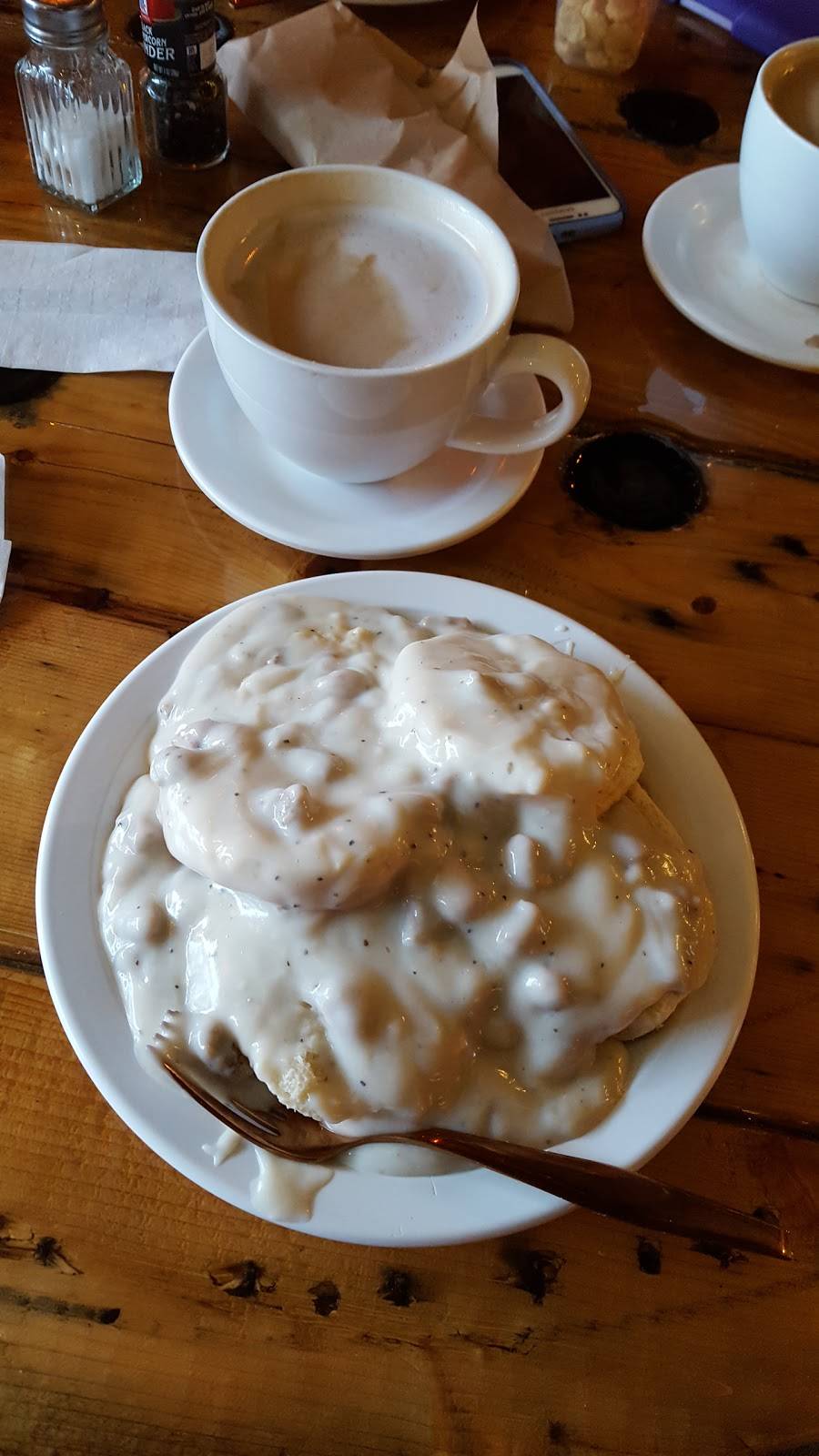 I walked in. I received two smiles and complement on my suit. Asked about breakfast and got full order of biscuits and gravy(on point delicious) and a jumbo blueberry muffin. $ 6.95 within 3 min was seated and eating. great service and nice atmosphere.I would love to have an option for juice at least rather than only coffee or tea but it is a coffee shop.