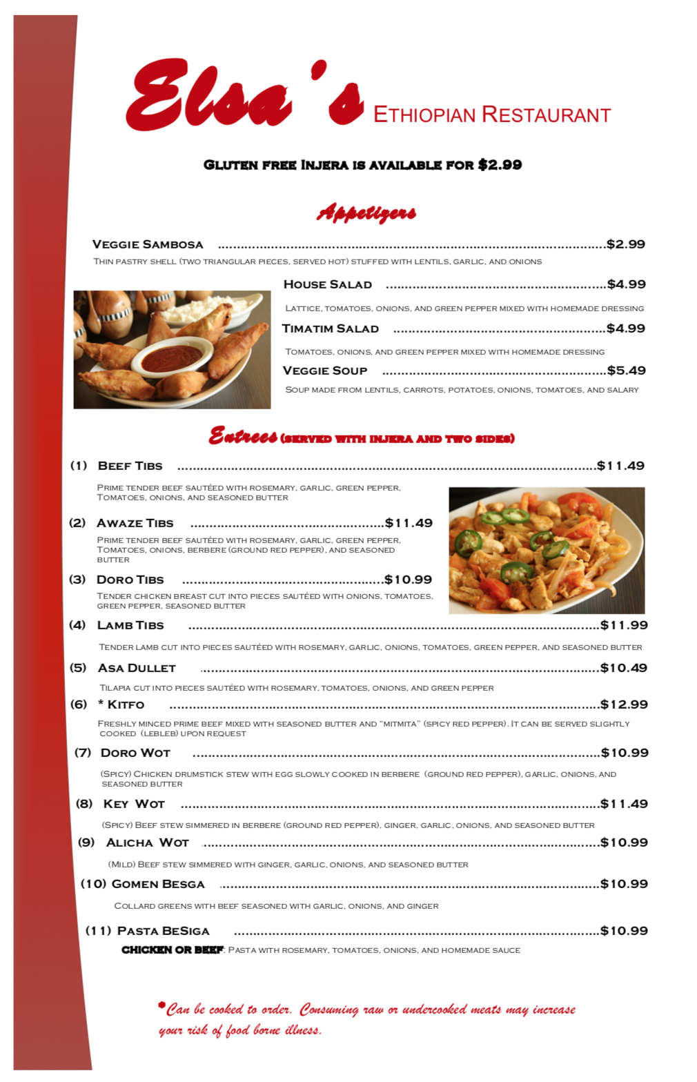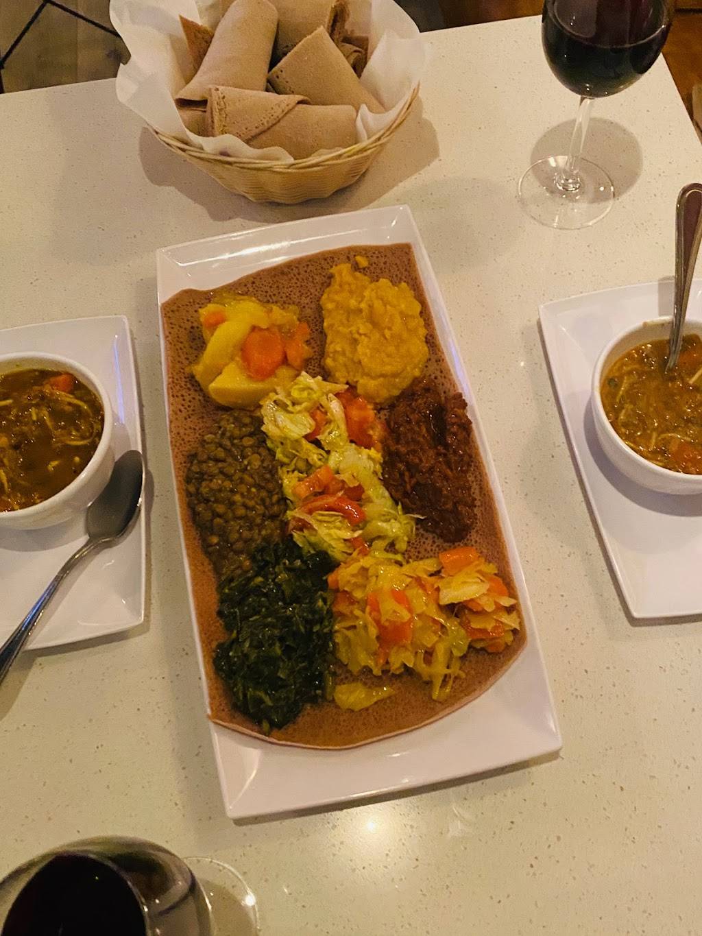 Authentic Ethiopian food, eat with your hands, no silverware. If you don't know what to order or how to eat the food, just ask. They are very friendly and helpful.