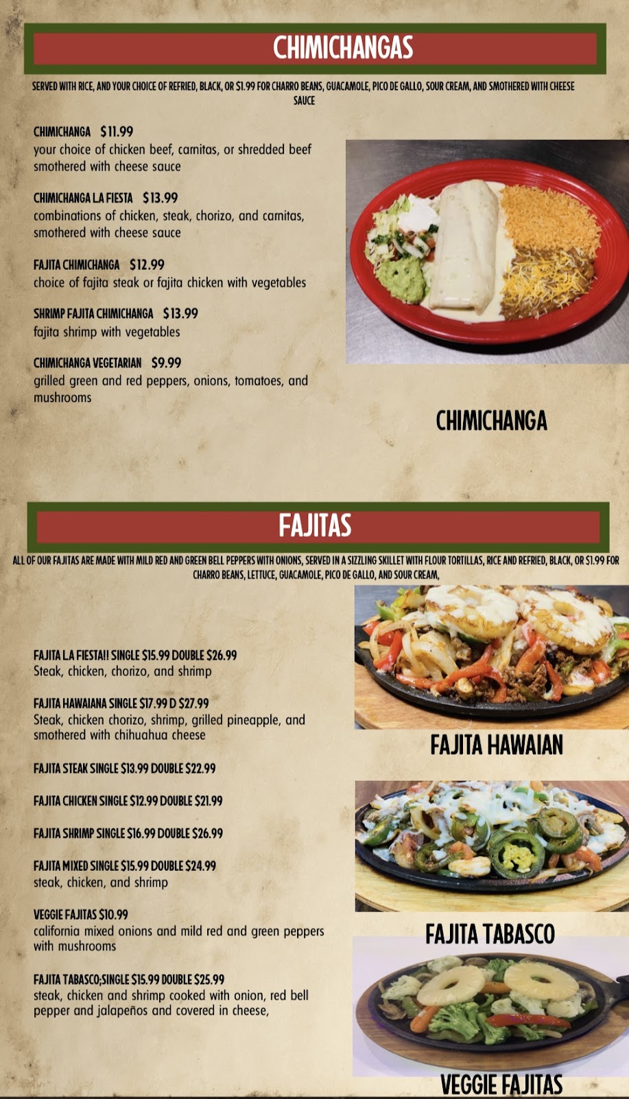 The food here is good! Obviously not the best I have had, considering I lived in LA and Vegas, but I’d say in this area it’s one of the better options. I usually order the Chimichanga. The guacamole is amazing, and their salsa is sometimes a hit or miss. The staff are friendly, but not consistent. Each time I order it’s a different price. The only things Negative about this place is that they put the beans and rice in with the same container as the chimichanga. Other restaurants put the chimichanga in its own container. Also, they have their menu priced too high. It cost me almost $25 for a chimichanga, side of guacamole and a Horchata. If the price was lower I’d probably eat here more often than I do now. I understand inflation is high, and there are shortages… But $5 for a little side of grilled onions, peppers and mushrooms is absurd