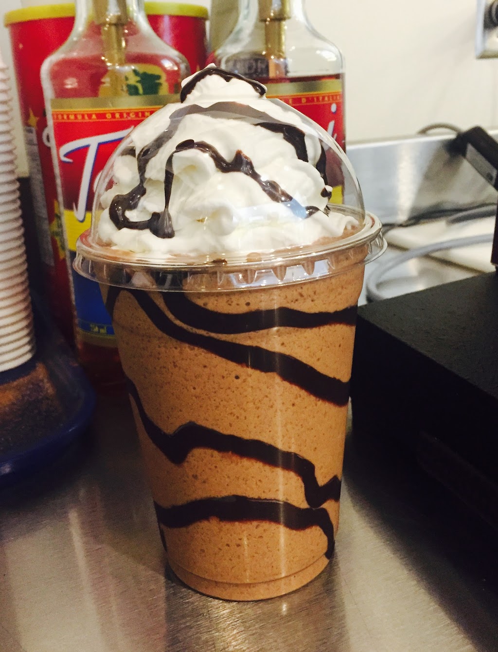 I wasn't a fan of the layout for the drive thru. I know thats sometimes inevitable though. However, my coffee drink tastes amazing and they were kind enough to double blend my husband's smoothie since he can't eat anything real solid at the moment. I also got two muffins: blueberry and blackberry raspberry they were both delicious! The name is really cool for coffee place too!