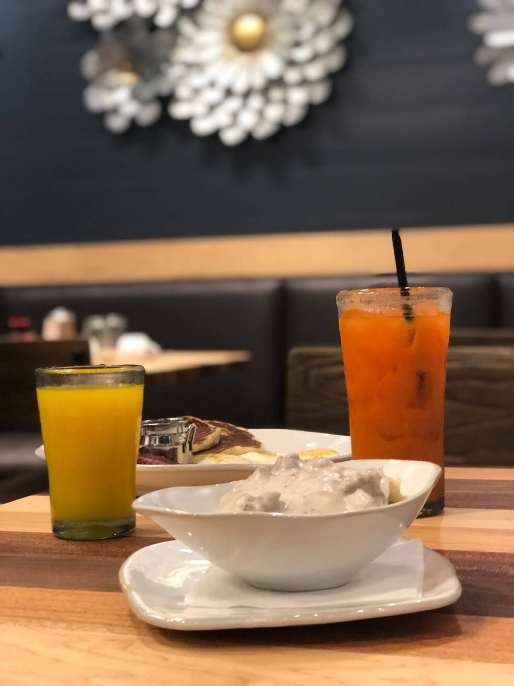 Staff was being very polite and welcoming at the entrance. They managed the large crowd very efficiently. The wait time was very short. It was fascinating to see almost everything in the restaurant was made locally. We indulged some fresh squeezed orange juice while going through our options on the menu. There were so many healthy and fresh options as well as some all time favorites like biscuits and gravy, corned beef hash and pancakes. I settled with corned beef hash, which was probably the best I have had for a while. Our server was very courteous; made sure we were content with the service all throughout our dining experience. I will definitely coming back here!