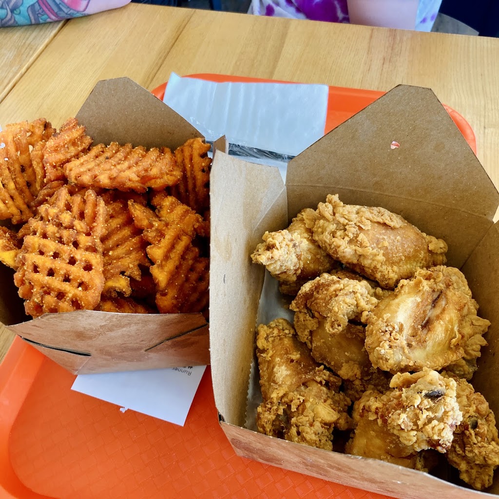 Great service! Huge, juicy, crispy, saucy, 10/10 wings. Fries were salted perfect. All around good experience! We tried bulgogi and another one i can't remember how to spell but still good and some spicy. Very clean 👌