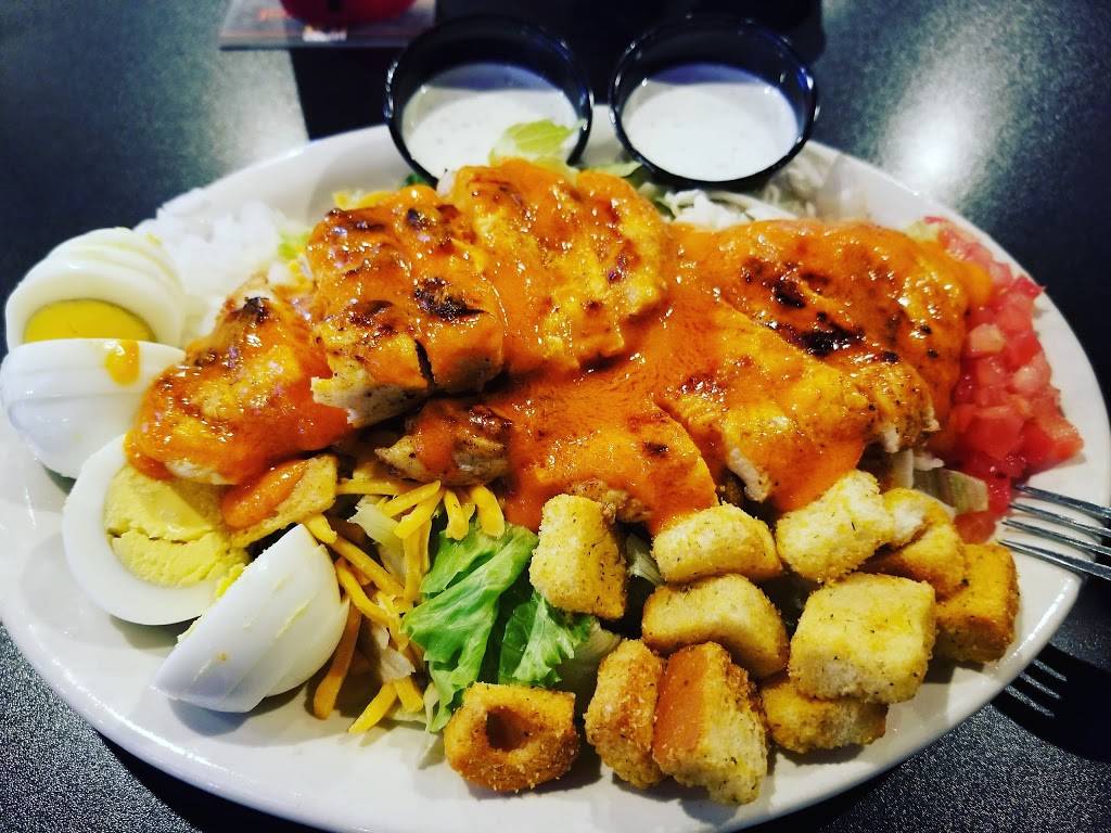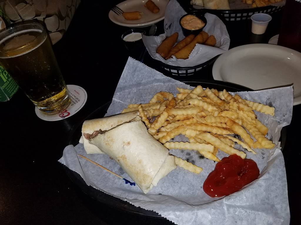 Good food and inexpensive. Drinks also.... huge inside with more tvs than an electronic store. Nice outside patio seating as well