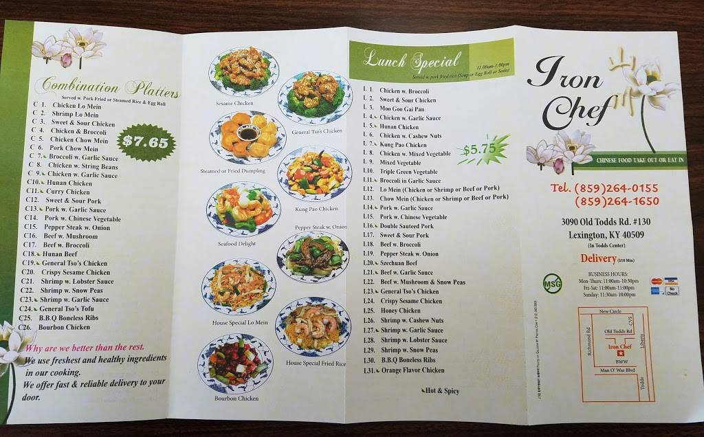 Great food, great service, reasonable price, delivery is also very fast, and I have tried many other different Chinese restaurants and this is the best. The general Tso' chicken is the best in the Lexington I think,and other dishes are also delicious and fresh. I will suggest Iron Chef restaurant to all my friends