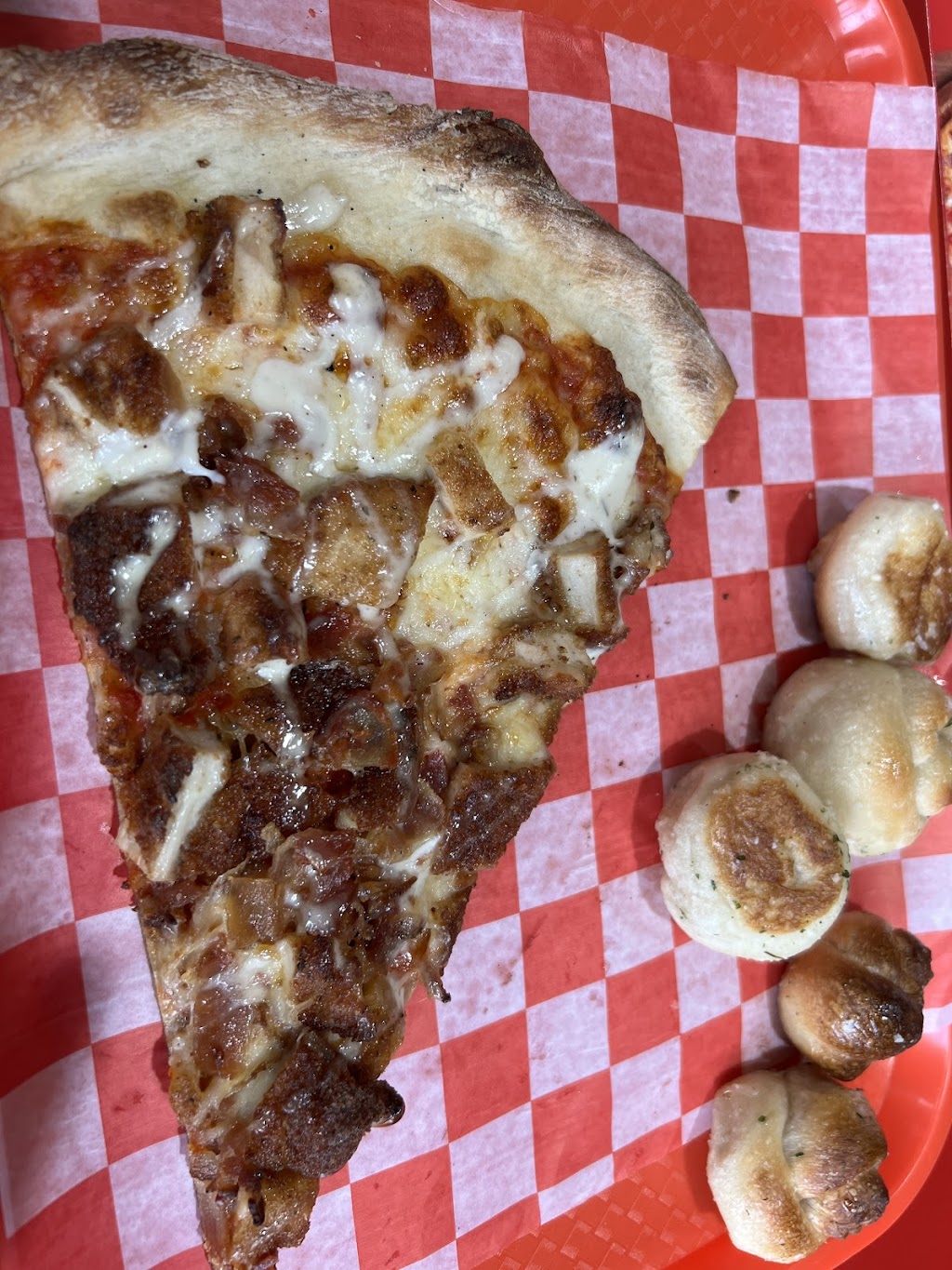 Great food! The pizza is delicious and the loaded garlic knots are the absolute best! Hands down one the best pizzas I’ve had! The staff is excellent also!
