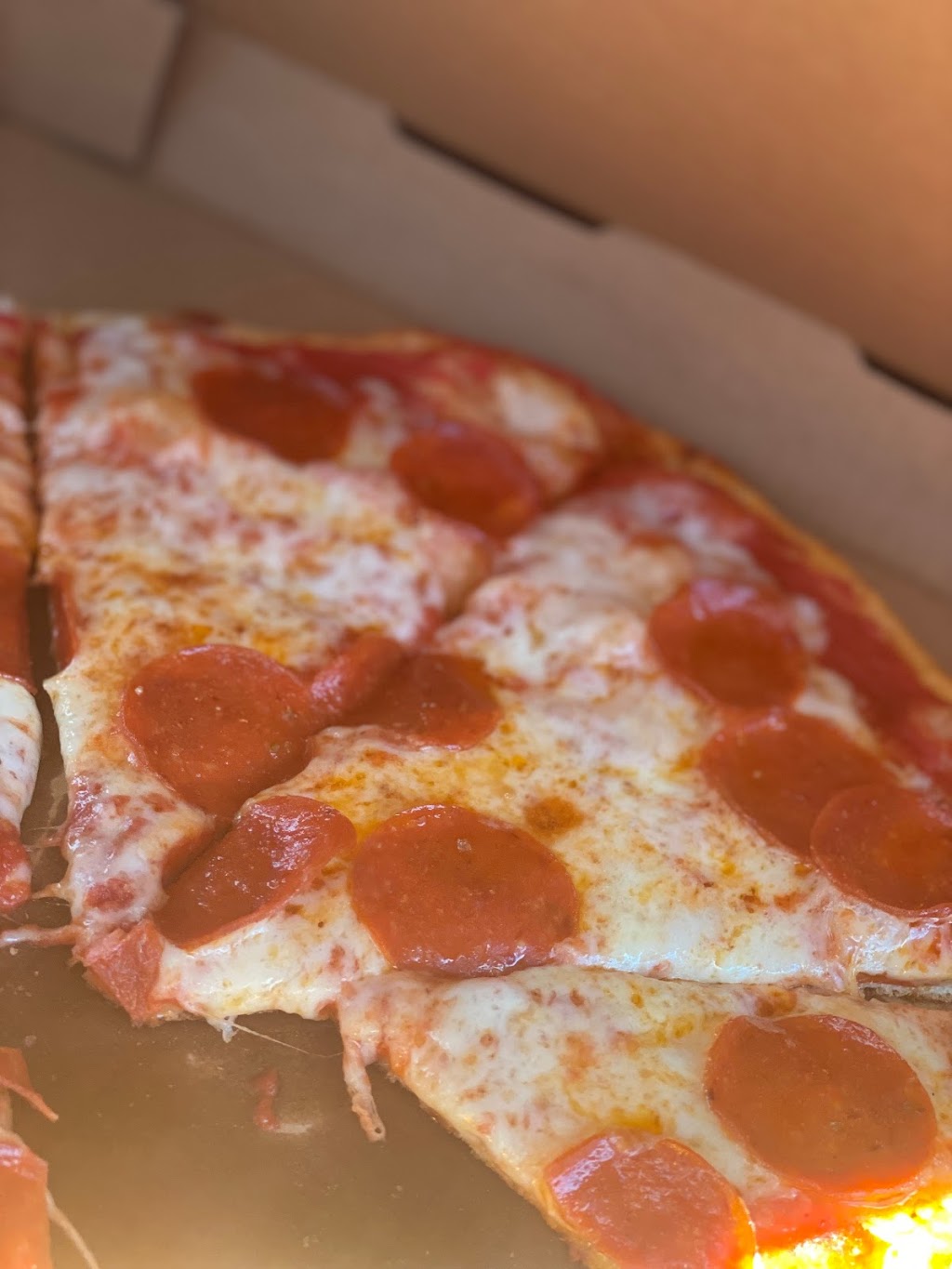 Got a large pepperoni pizza, slices are as big as New York style pizza should be, you should have to fold it in half, also the flavor of the sauce was spot on, and delicious. The dough is perfect too. Thin dough for standard and extra thick on the silican was a perfectly flavored and textured base for that amazing sauce. Cheese that wasn't rubbery, just smooth feeling and great tasting. I ate too much and I still want more! Overall a pleasant experience with excellent food, funny and charming service, and a clean restaurant. You can tell someone really knows New York style pizza and harnesses their culinary power to create wonderful pies straight from the big city. Love it! Will be back for sure.