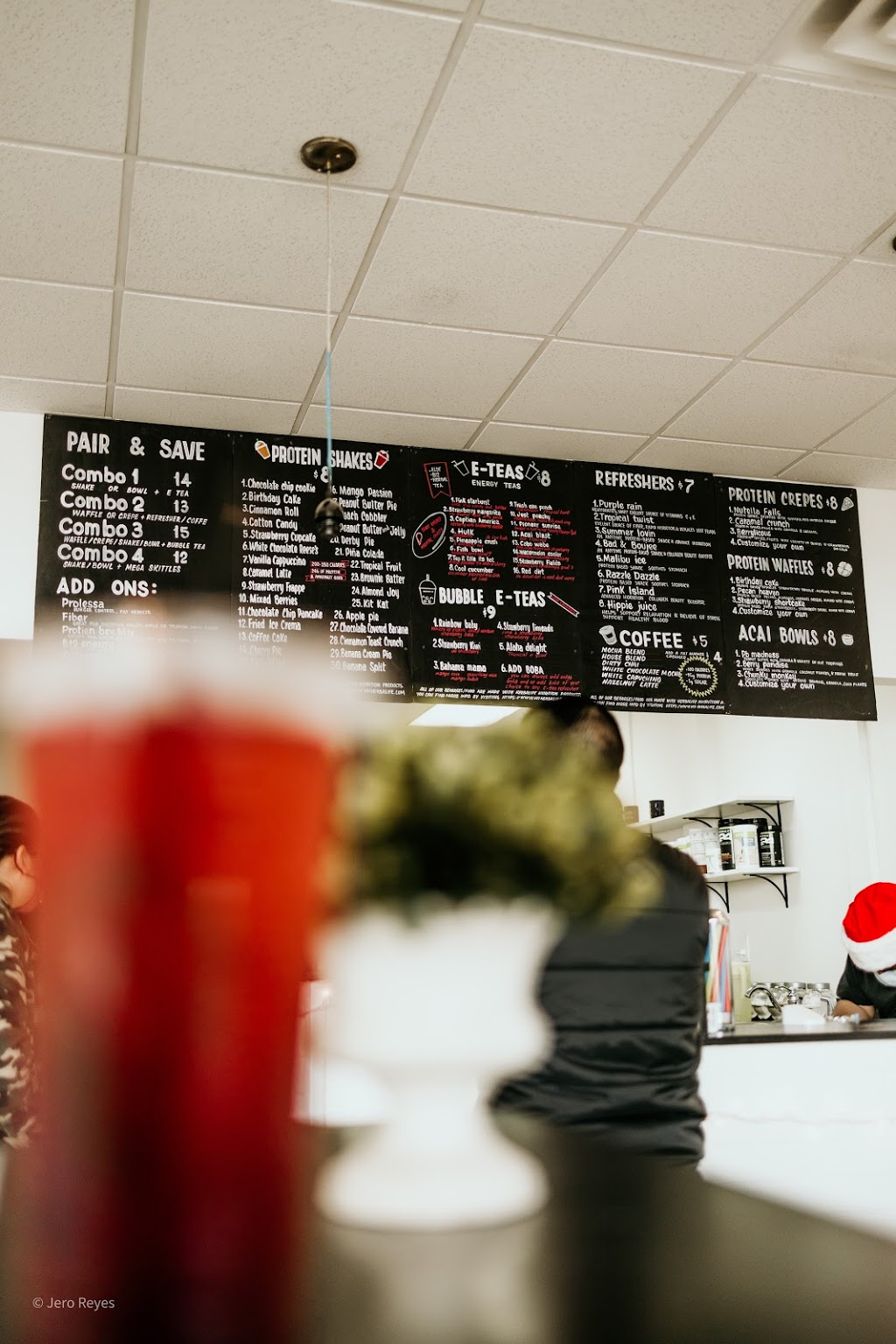 Awesome place! Very cute interior and the staff was friendly and efficient. They have a variety of drinks, I went there to get boba tea specifically but they have protein shakes and other teas/coffees too. I was a little wary at the $9 price for a boba tea, but it was very much worth it! The tea itself was huge compared to other places I’ve been, and they actually put a LOT of boba in it ^.^ I got the “Strawberry Kiwi” and my boyfriend got the “Bahama Mama”, both were 10/10!