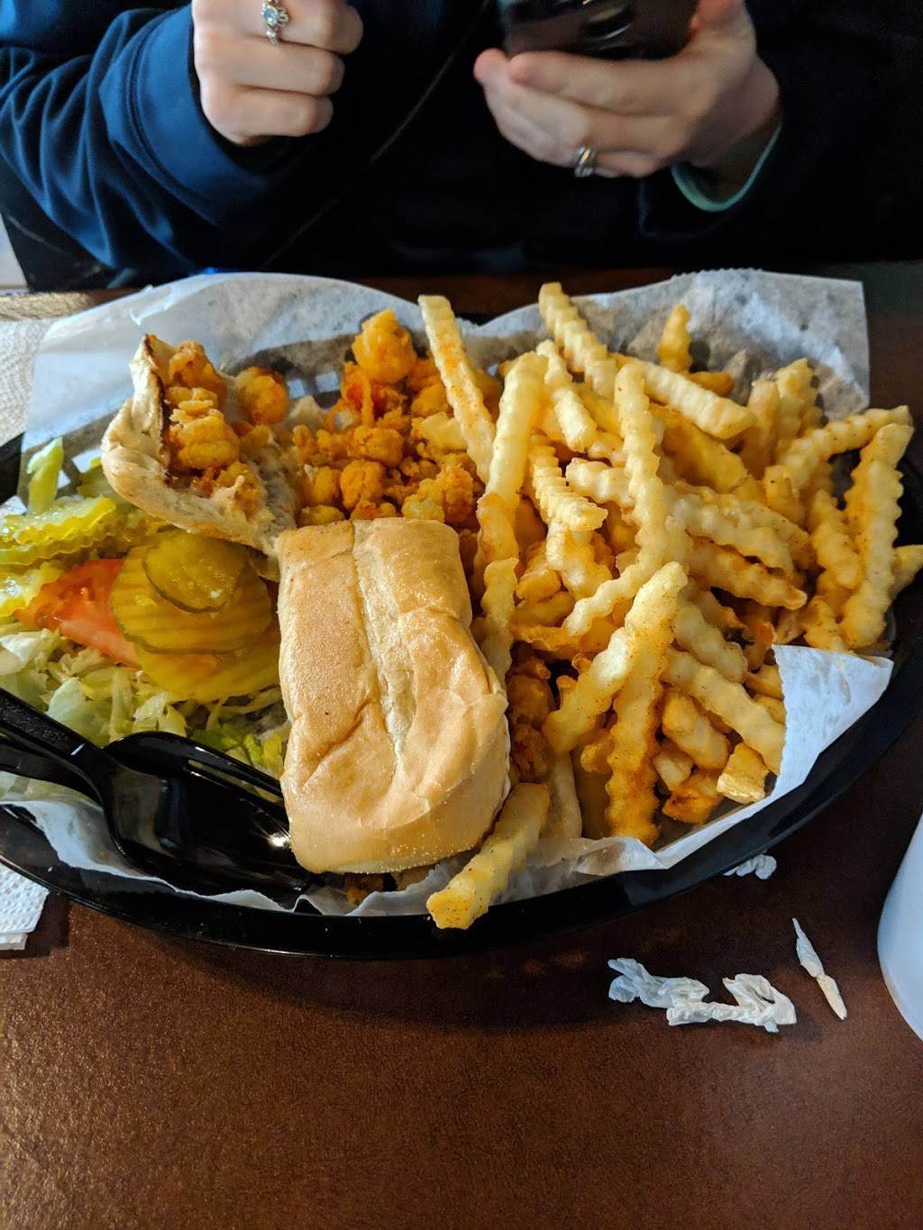 Food is good. This was my first time & I had the shrimp basket. It didn’t taste overcooked, it didn’t taste fishy. The flavoring was just right. I will definitely go back!